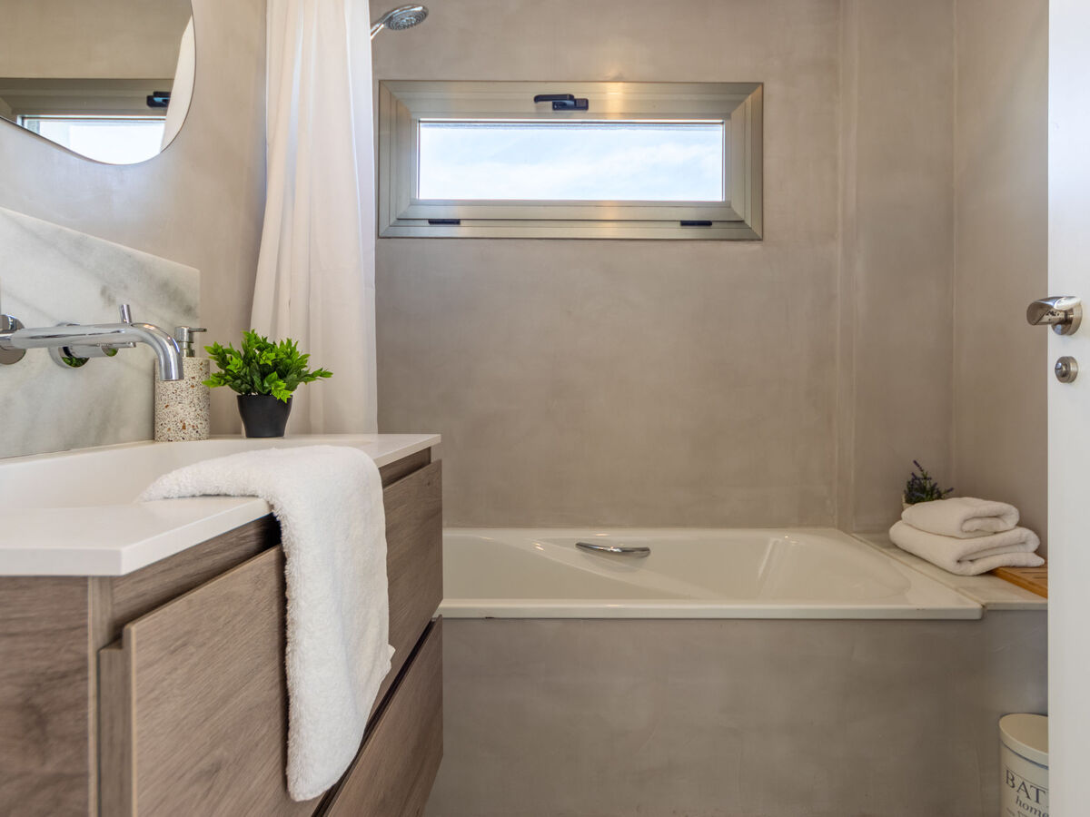 À l'étage supérieur: 2 chambres doubles, chaque chambre avec: 1 grand-lit (135 cm, longueur 190 cm), air-conditionné et chauffage à air chaud.