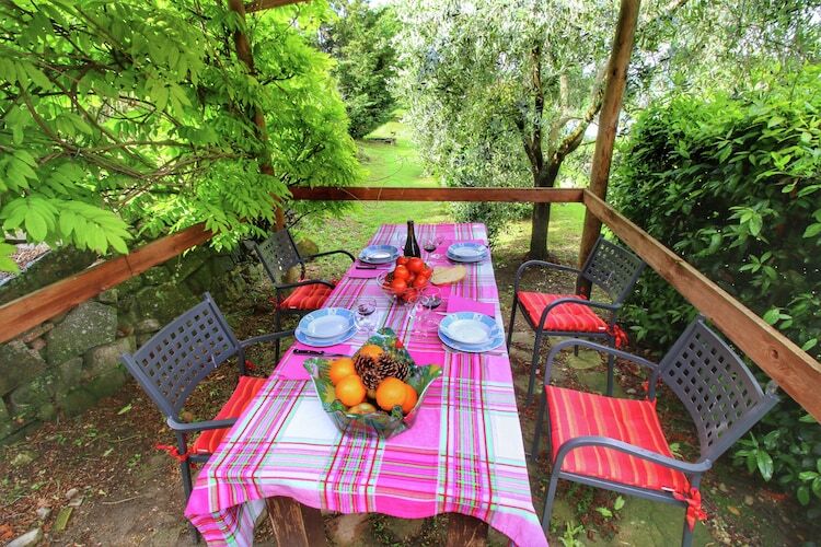 Au 1er étage: (Salle de séjour(table, cheminée), cuisine(poêle, four, lavabo), chambre(Lit double ou 2 x lit simple), chambre(2x lit simple), salle de bains(douche, lavabo, WC, bidet), balcon) lave-linge (partagé avec d'autres clients), chauffage(central), terrasse(privé), jardin(partagé avec d'autres clients), mobilier de jardin, barbecue(partagé avec d'autres clients), parking, piscine(partagé avec d'autres clients, 15 x 7 m., ouvert de 1/2 Mai jusqu'à (inclus) Sept), terrain de pétanque