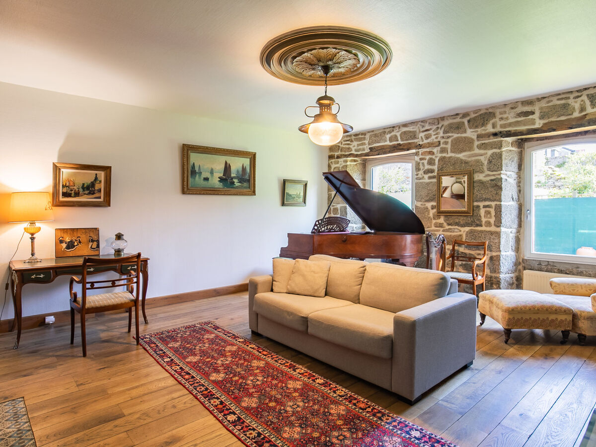 Salon avec Piano Pleyel quart de queue centenaire (entièrement restauré) et une harpe celtique.