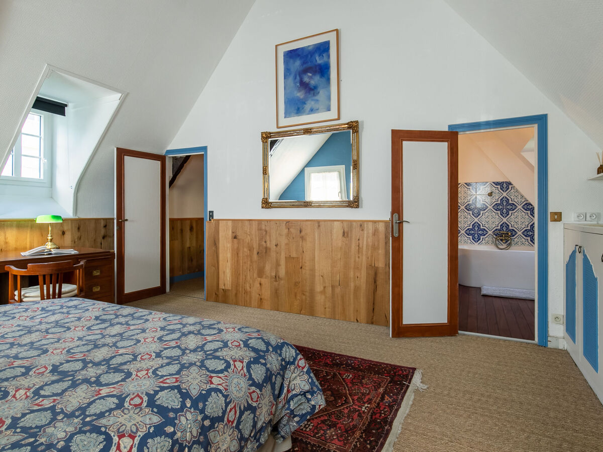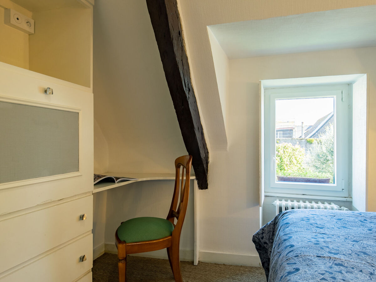 Dans le quartier de La Croix, à 100 m du centre de Concarneau, excellente situation: centrale mais tranquille, à 100 m de la mer, à 300 m de la plage.