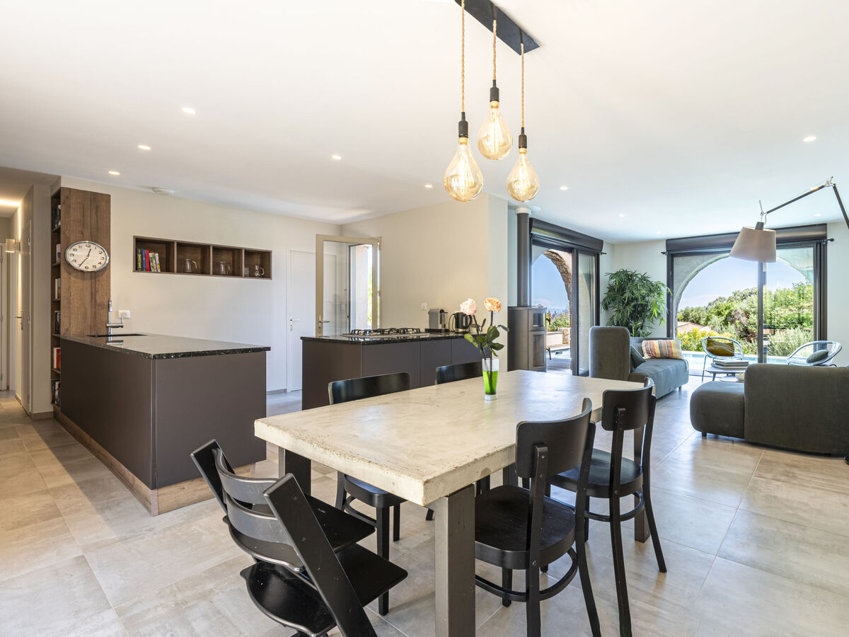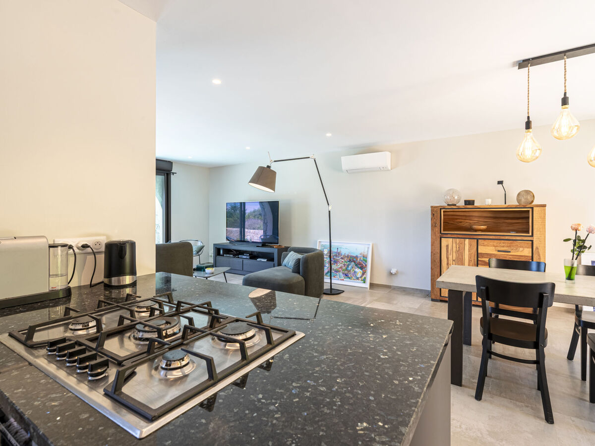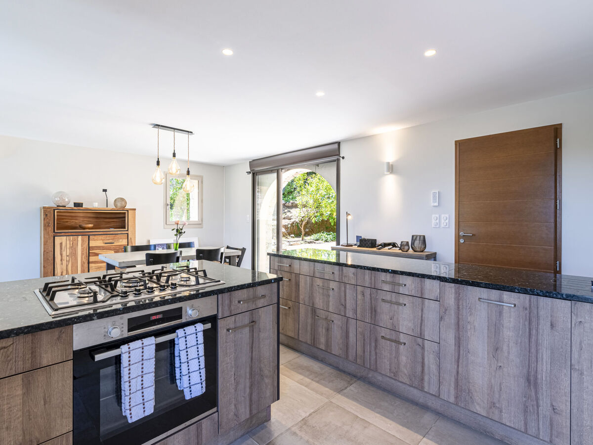 Cuisine ouverte (four, lave-vaisselle, 5 feux, grille-pain, bouilloire électrique, micro-ondes, cafetière électrique).