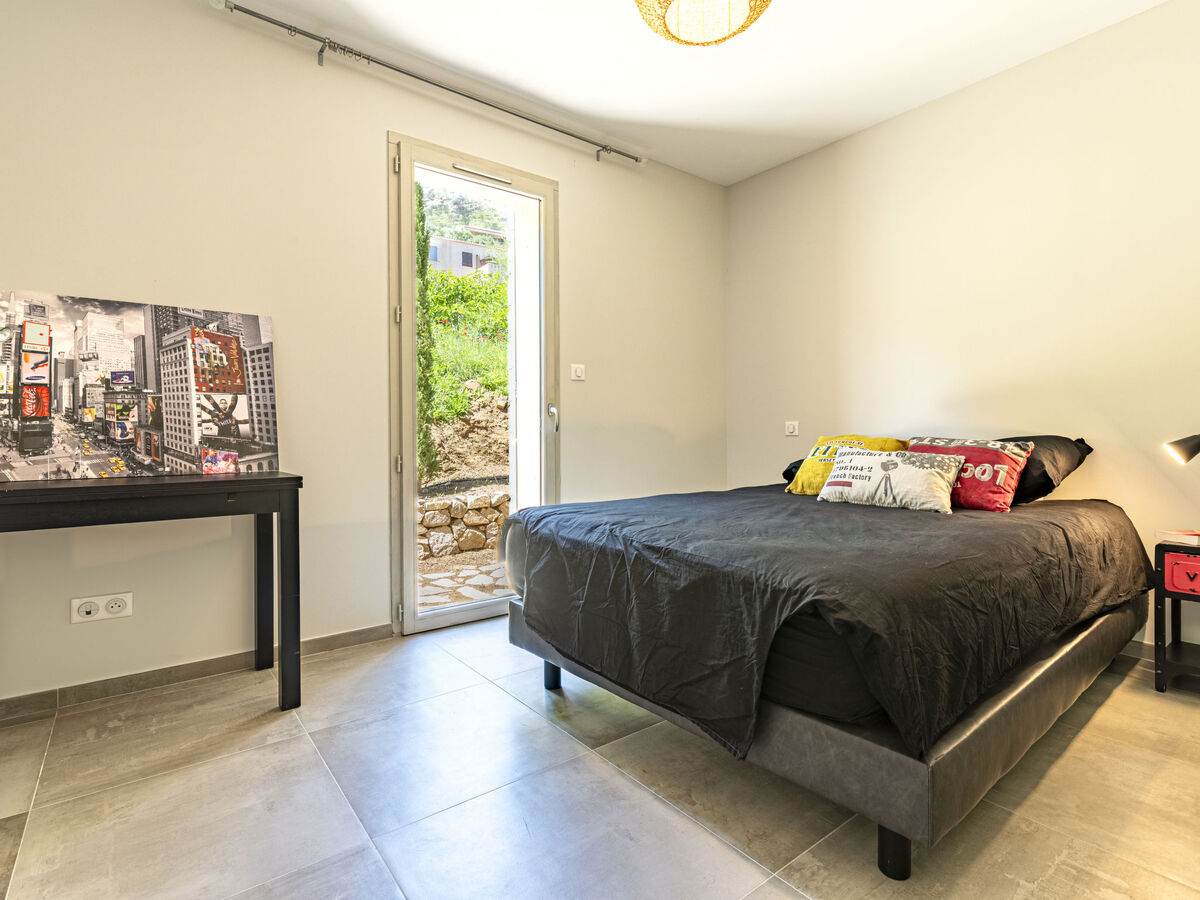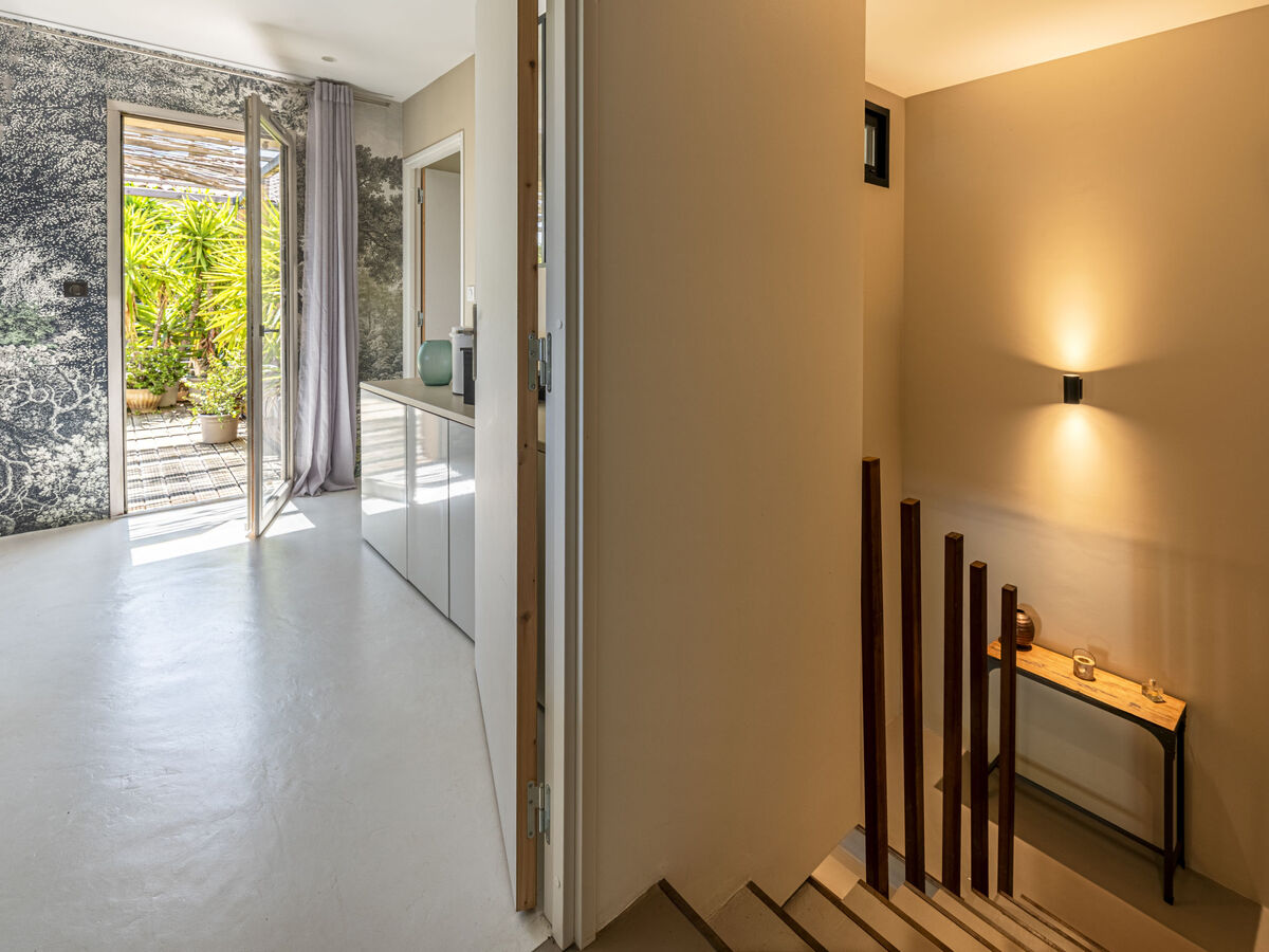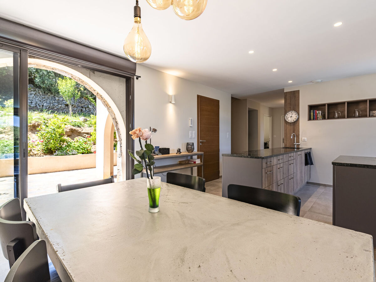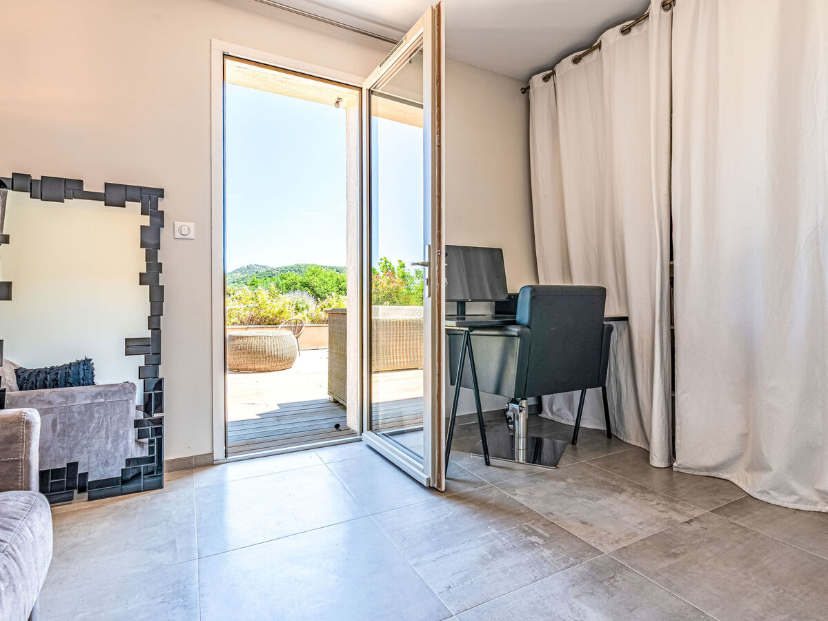 Sortie sur la terrasse, sur la piscine.
