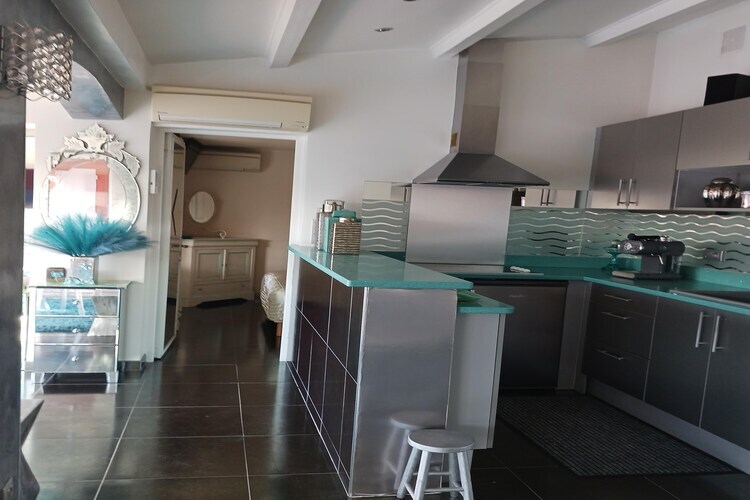 Rez-de-chaussée: (cuisine ouverte(foyer, grille-pain, plaque de cuisson, cafetière/percolateur, four, micro ondes, lave-vaisselle , combinaison réfrigérateur/congélateur, lave-linge , ), salle à manger-salon(TV, coin salon, système de musique sans fil), chambre avec salle de bains(lit double, TV, douche, lavabo, WC)) climatisation, terrasse, mobilier de jardin, transats, parking, piscine(privé, alarme de piscine, 6 x 4 m.)