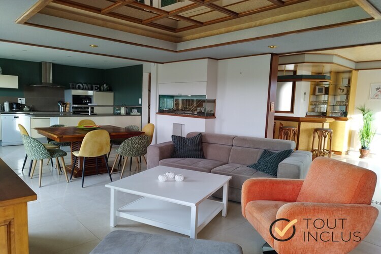 La cuisine ouverte est entièrement équipée d'appareils à induction modernes, dont un réfrigérateur, un micro-ondes, un four, un congélateur, un lave-vaisselle et tous les ustensiles de cuisine nécessaires. Les commodités supplémentaires comprennent une machine à café, un grille-pain, une bouilloire et un presse-agrumes. Avec un espace pour enfants et une variété de restaurants à proximité, cette maison est une base parfaite pour une escapade familiale mémorable.