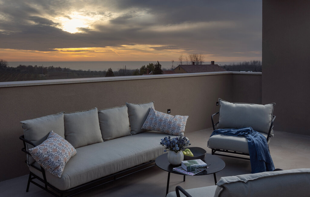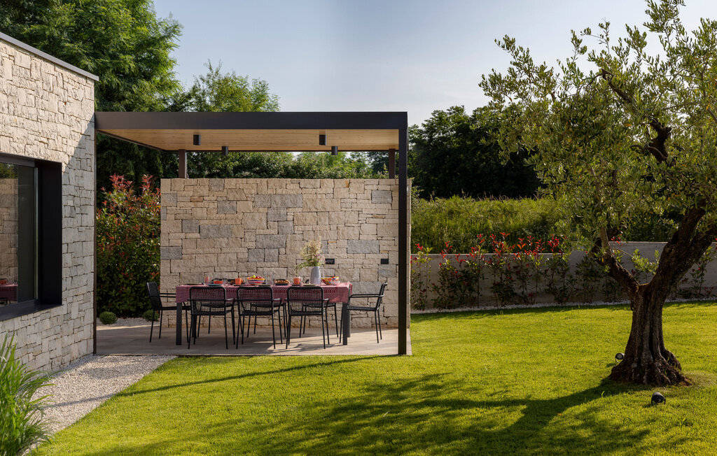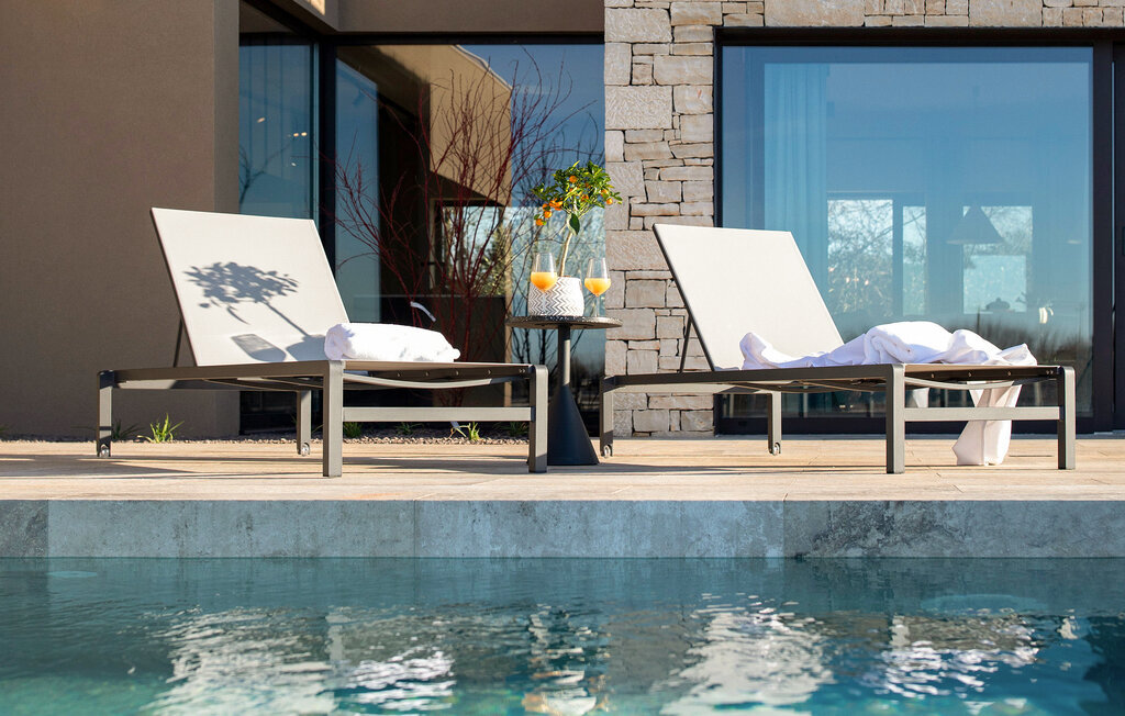 L'espace extérieur est une véritable oasis de bien-être. Plongez dans la piscine scintillante, profitez du soleil sur l'une des chaises longues confortables et passez des soirées barbecue conviviales sous la pergola ombragée. Observez les étoiles sur le toit-terrasse et offrez-vous un verre de vin.