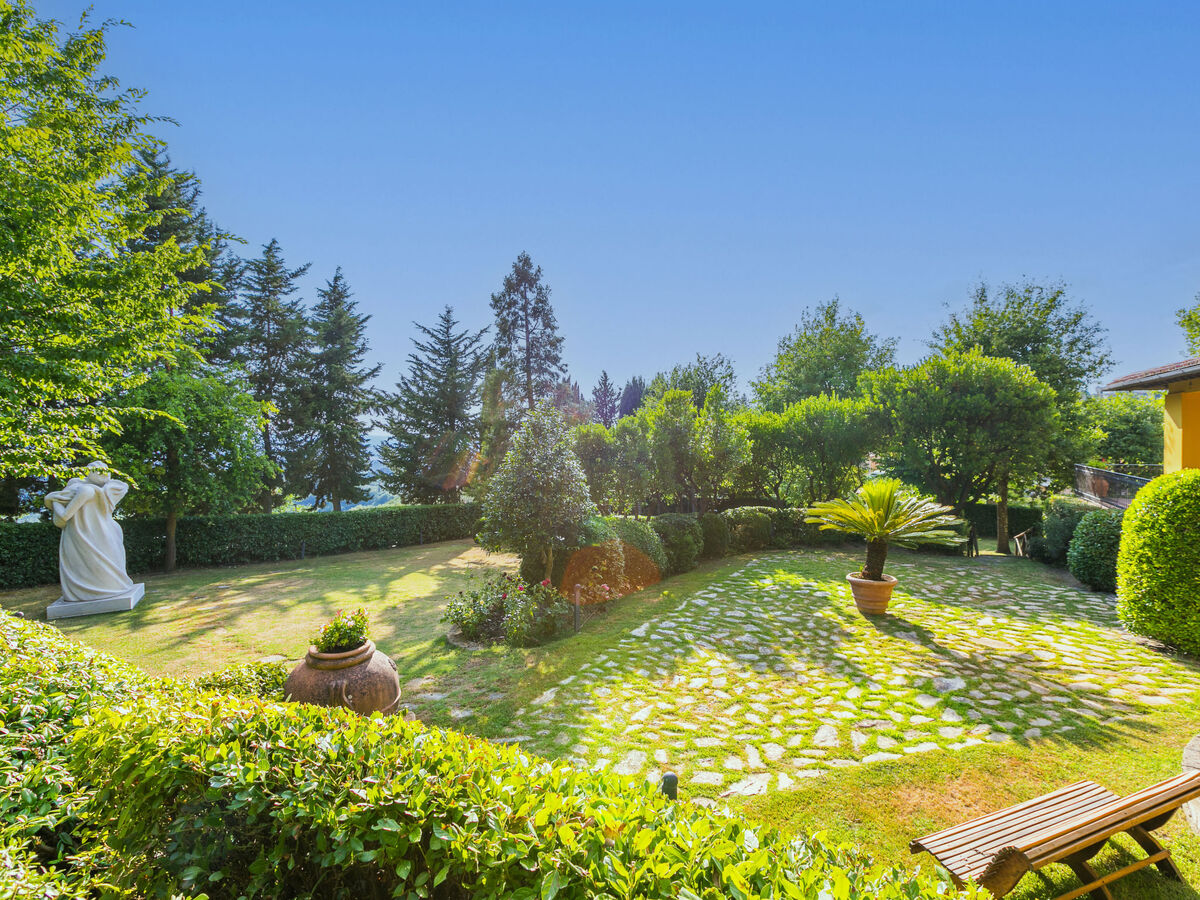 A usage privé: grand jardin entretenu (clôturé) avec plantes et arbres, piscine (5 x 10 m, profondeur 100 - 250 cm, disponibilité saisonnière: 20.Avr.