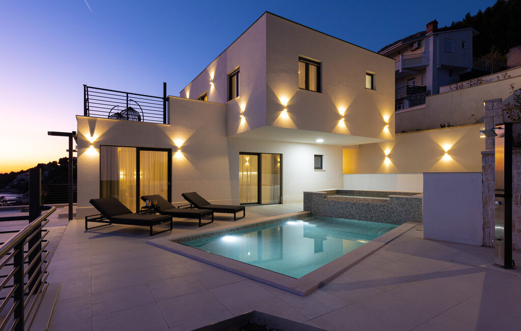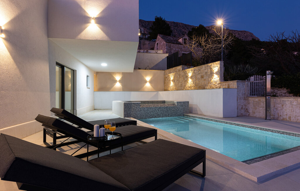 Bien-être à l'extérieur : Location de vacances disposant de chaises-longues et d'un ou plusieurs équipements tels que piscine extérieure, jacuzzi extérieur, lit à baldaquin de jardin etc...