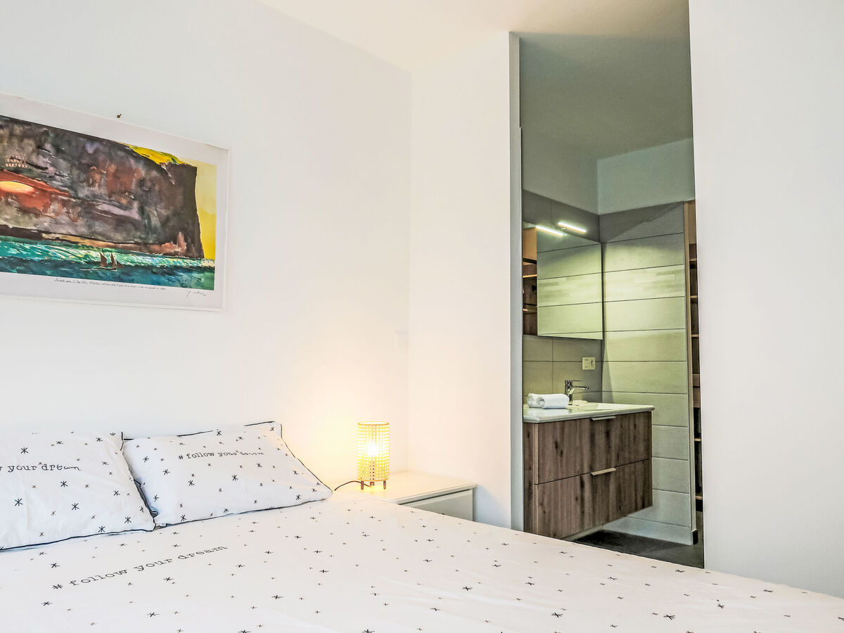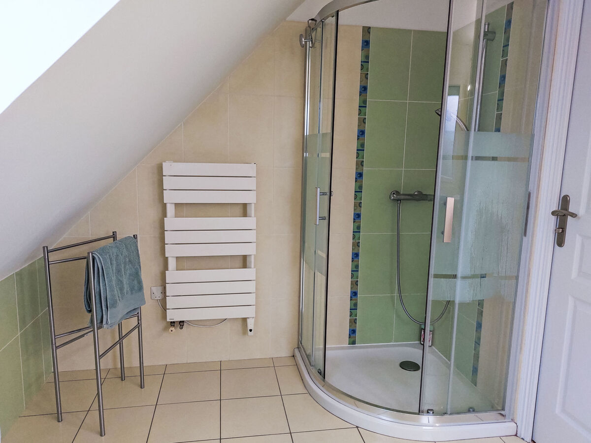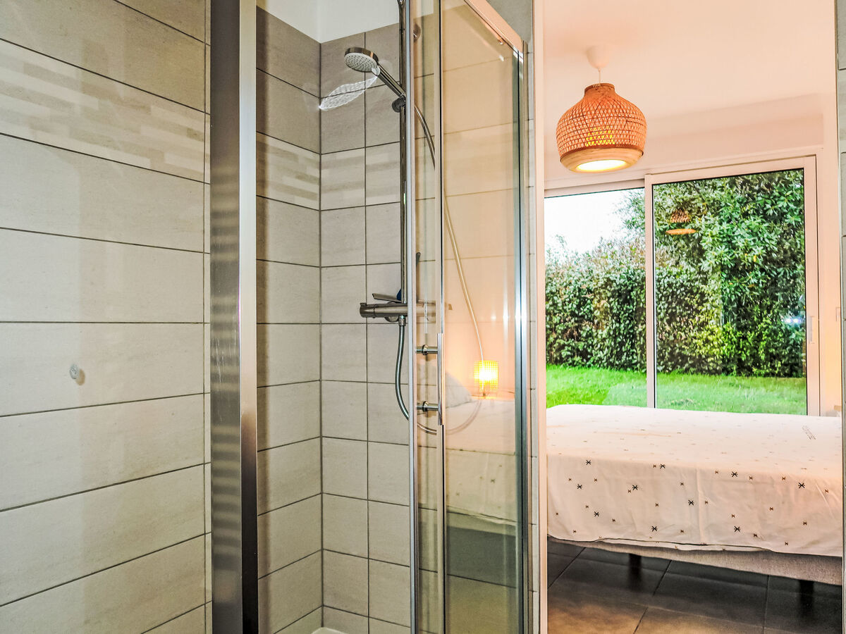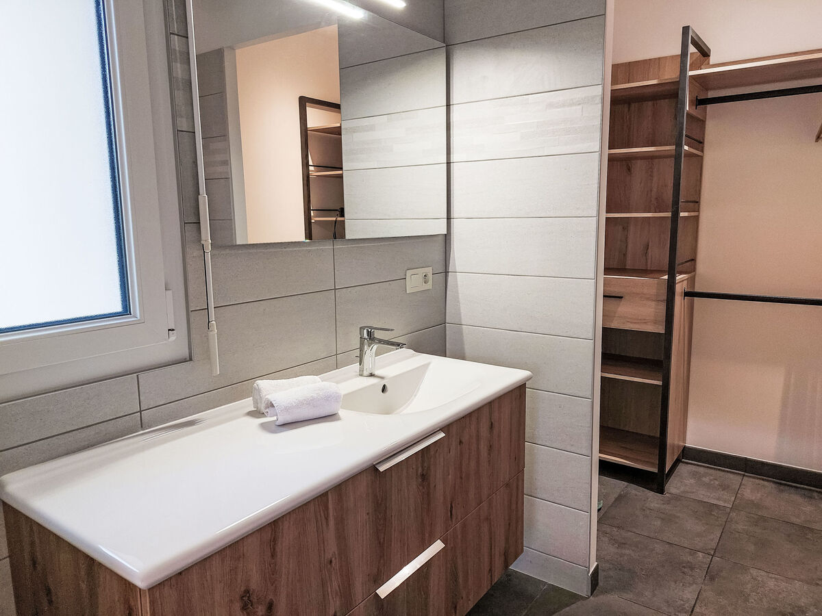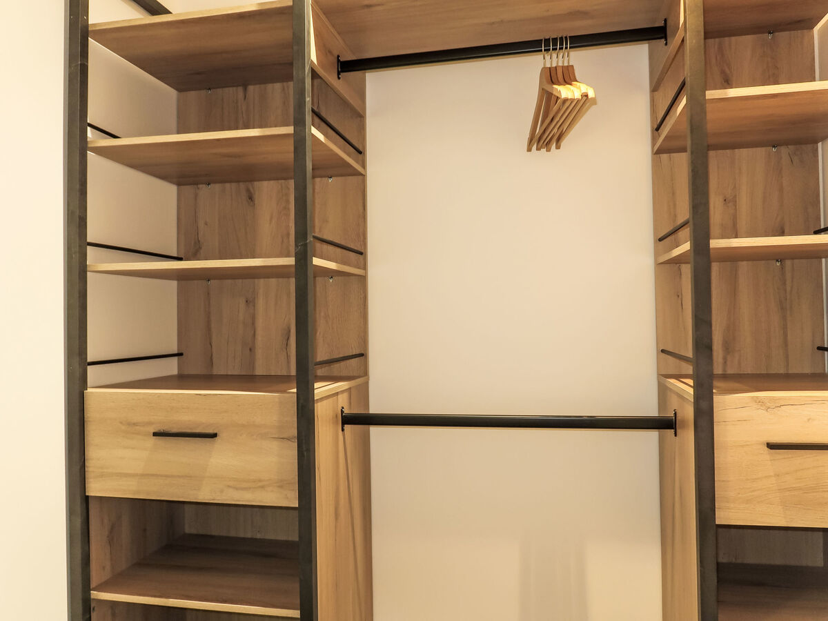 1 chambre avec Dressing avec 1 grand-lit (160 cm, longueur 200 cm), douche.