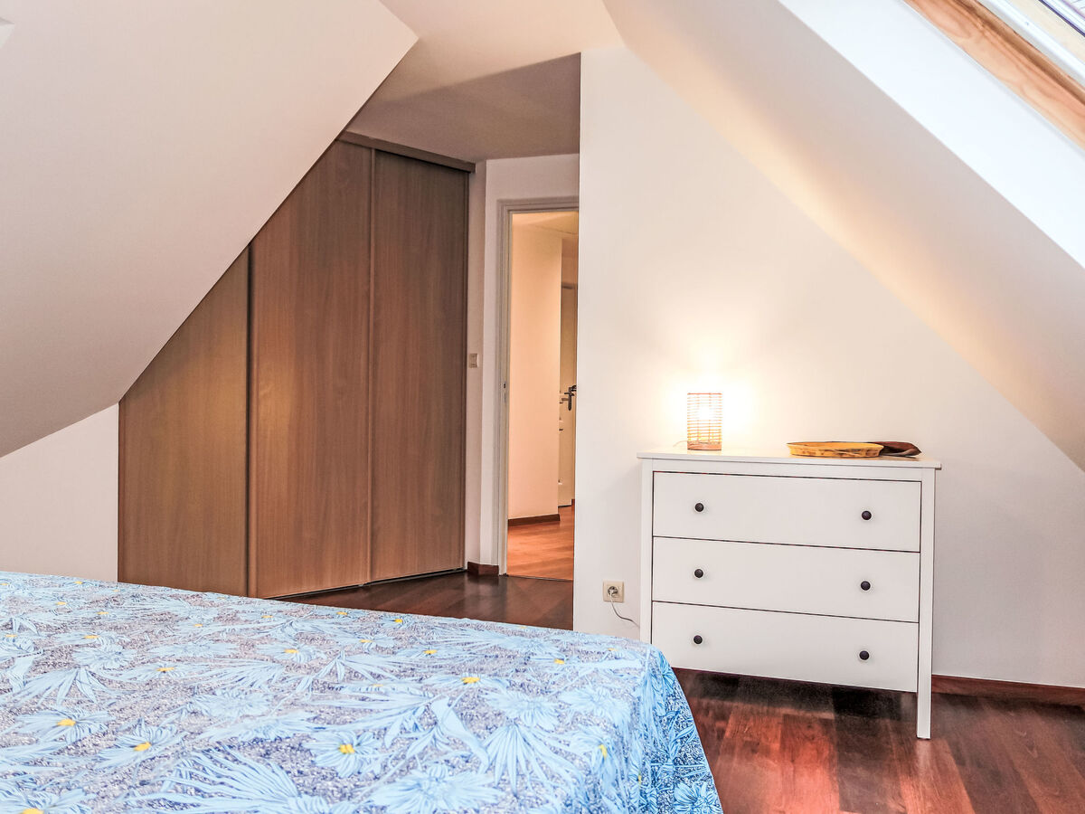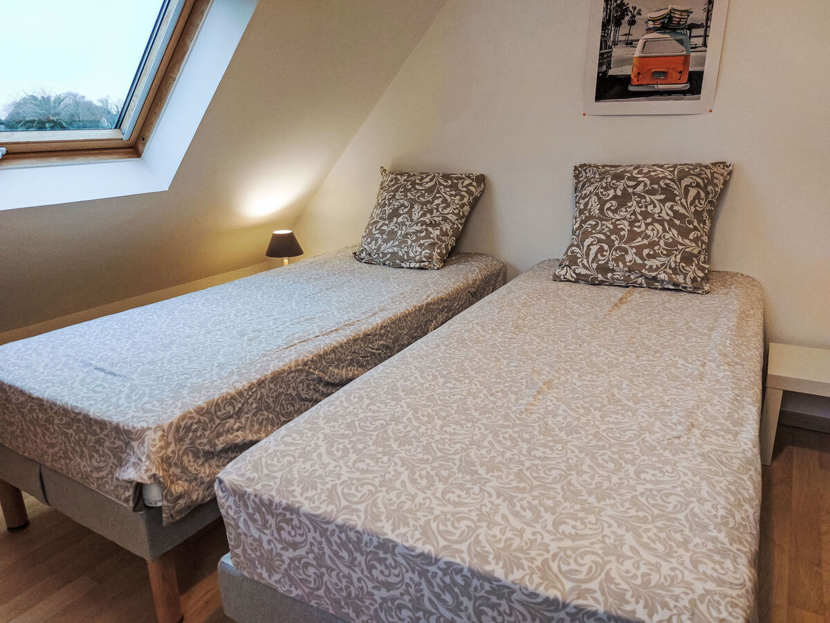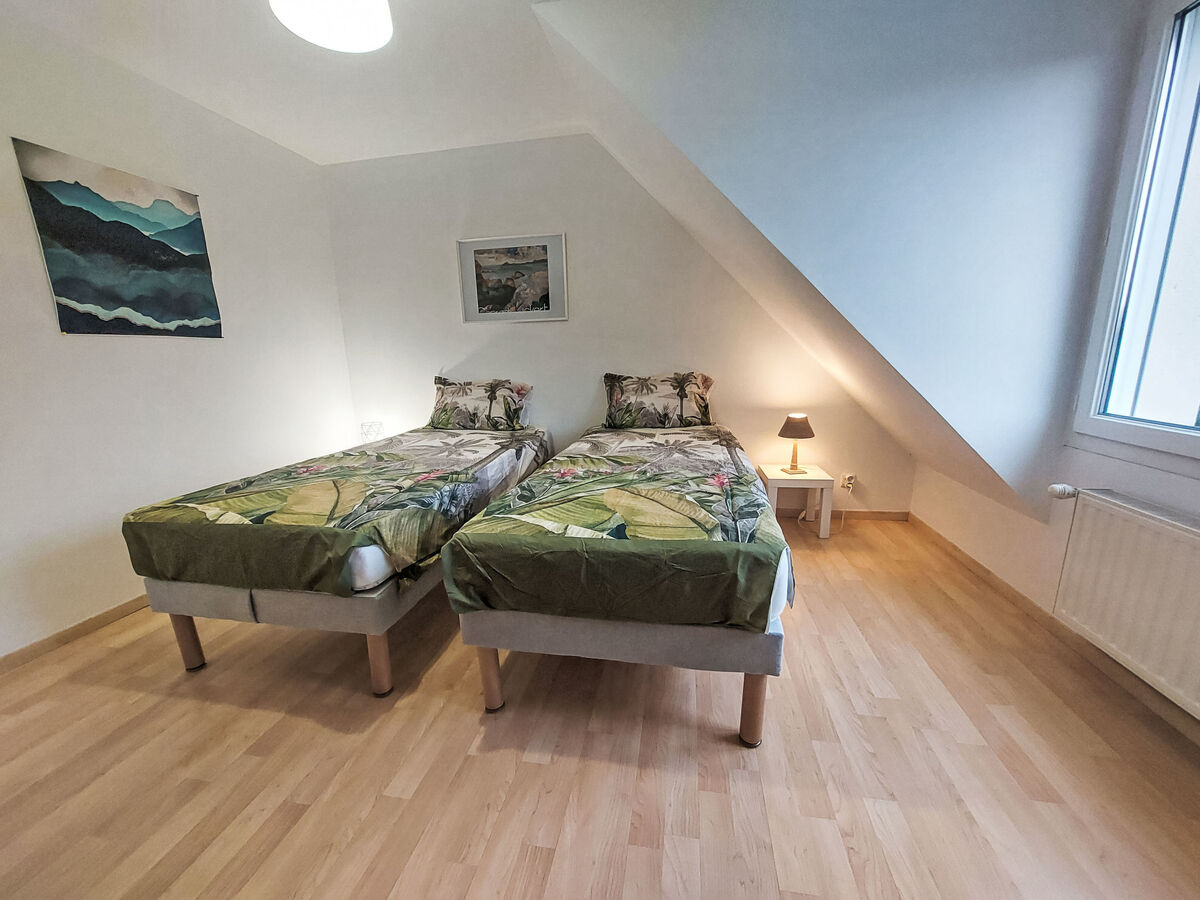 À l'étage supérieur: 2 chambres, chaque chambre avec: 2 lits (90 cm, longueur 200 cm).