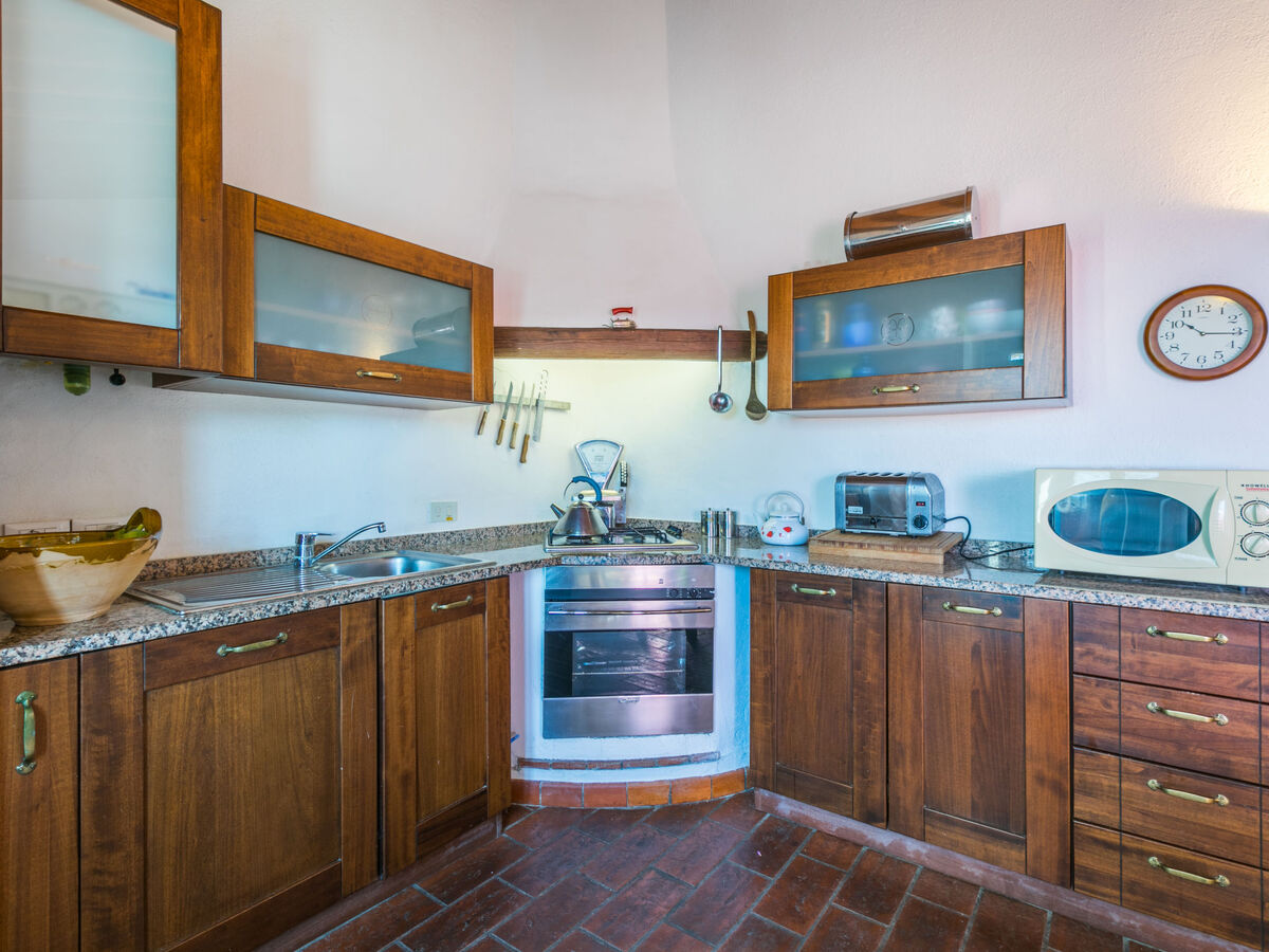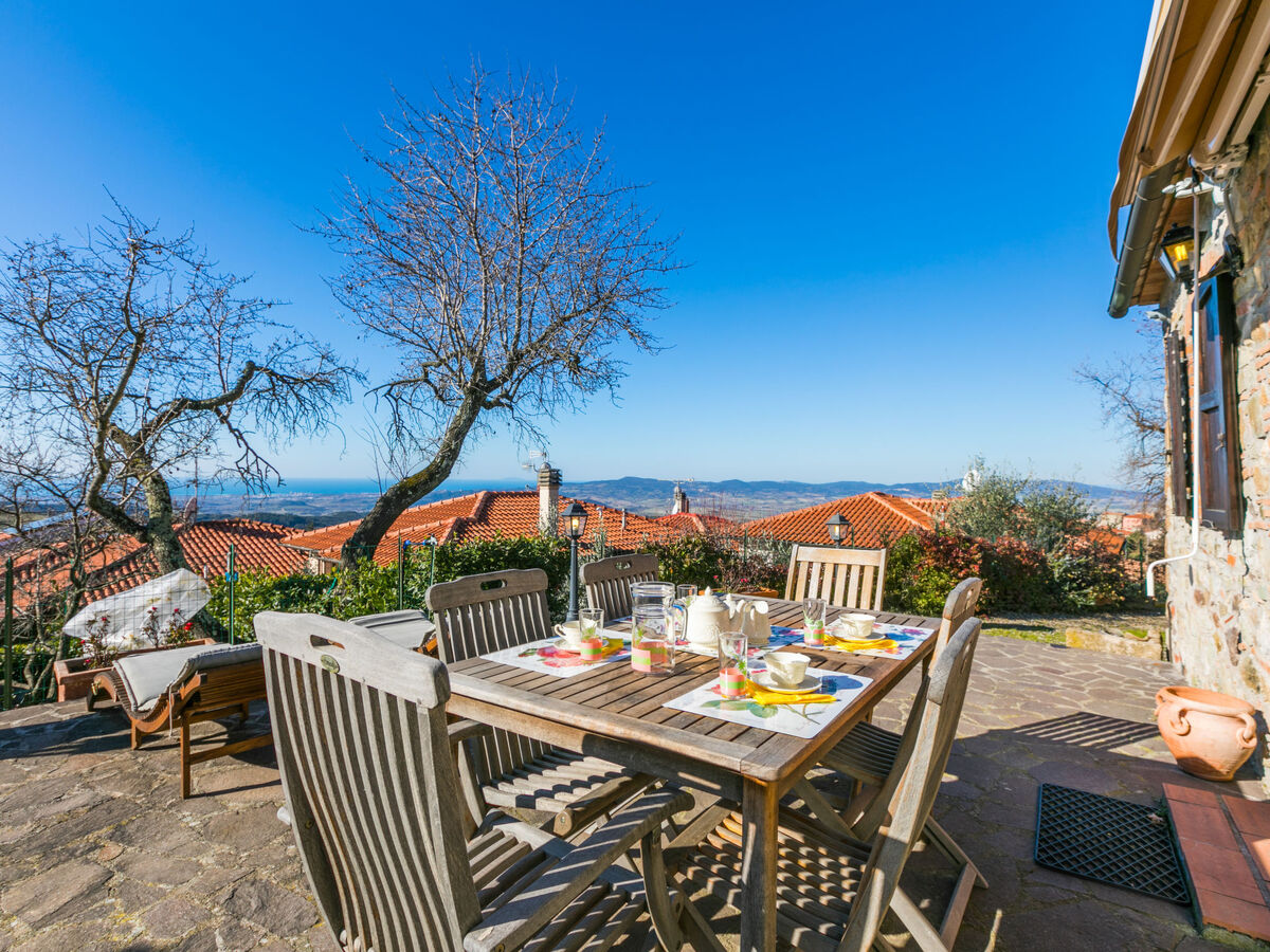En bordure de la localité, à 400 m du centre de Castellina Marittima, situation tranquille sur un versant, à 50 m de la forêt, à 15 km de la mer, à 15 km de la plage.