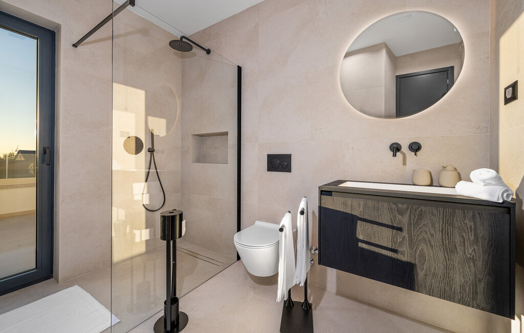 L'élégant espace extérieur vous séduira également. Jouez au ping-pong, au badminton ou au football ou laissez-vous tout simplement aller sur la chaise longue. Organisez un barbecue dans la bonne humeur et plongez dans la piscine magnifiquement éclairée lors des douces soirées d'été.