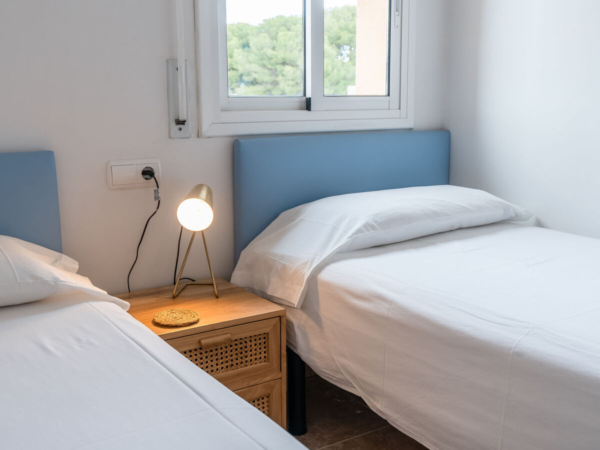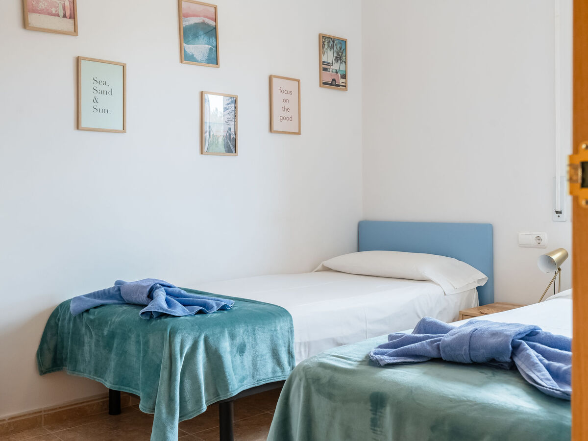 1 chambre avec 2 lits (90 cm, longueur 190 cm), air-conditionné et ventilateur.
