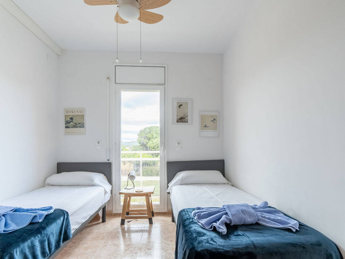 1 chambre avec 2 lits (80 cm, longueur 190 cm), air-conditionné et ventilateur.