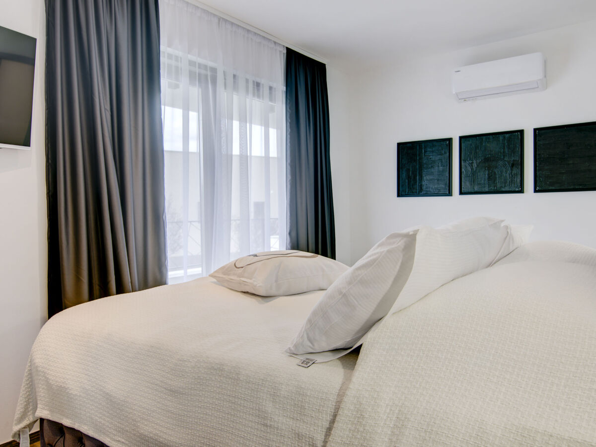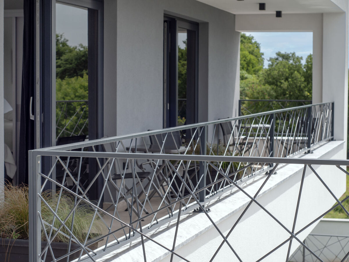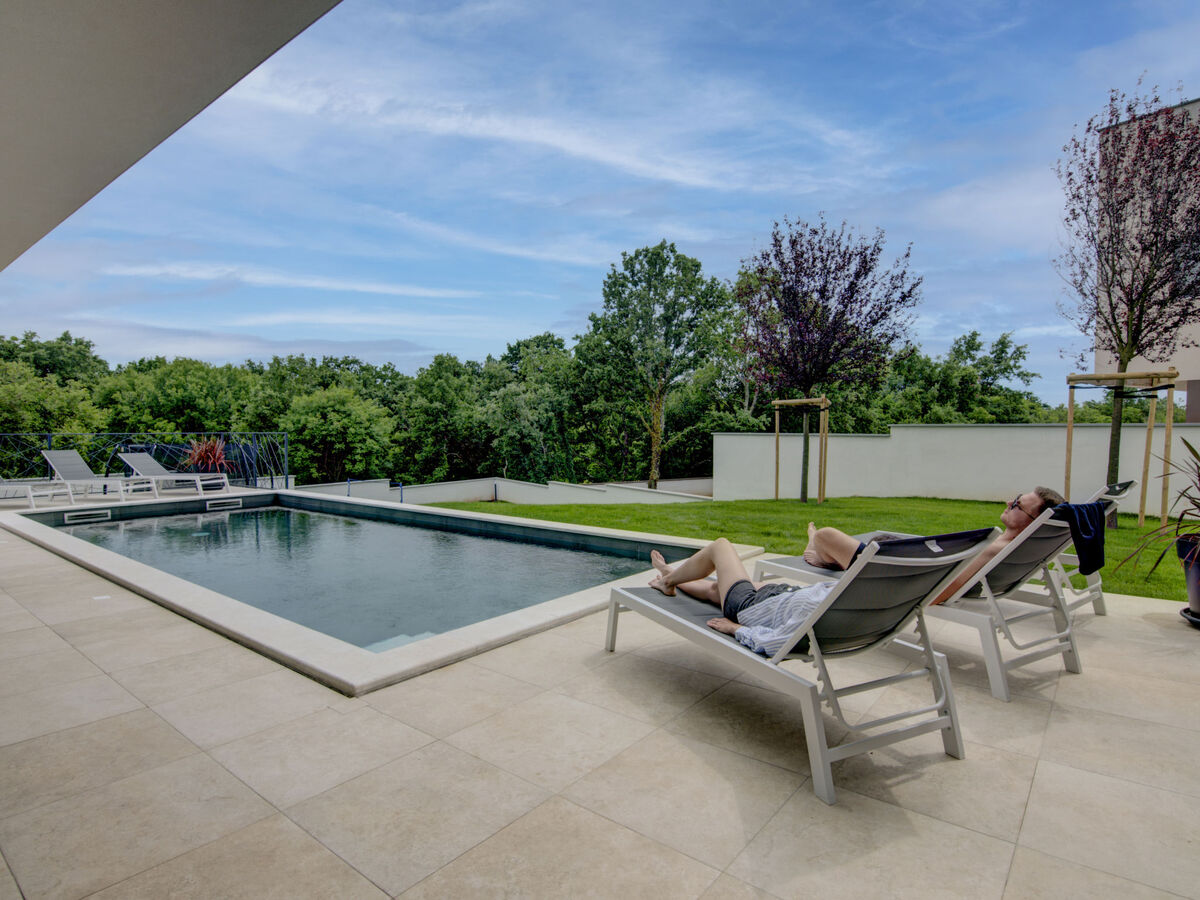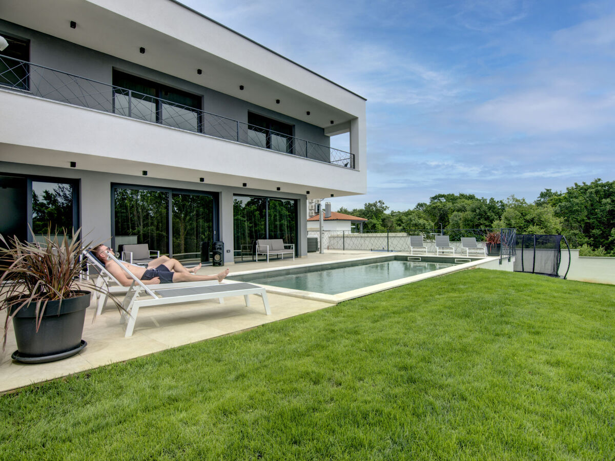 A usage privé: terrain 600 m2 (clôturé), jardin avec fleurs, piscine rectangulaire (9 x 4 m, profondeur 140 cm, disponibilité saisonnière: 01.Mar.