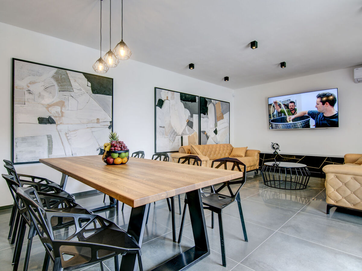 Aménagement agréable: séjour/salle à manger avec 1 divan-lit double (160 cm, longueur 200 cm), TV (satellite) (écran plat).