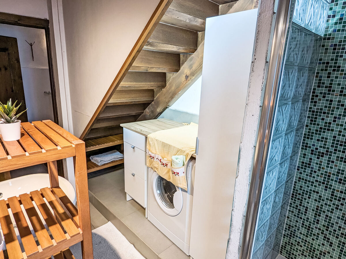 À l'étage inférieur: 1 chambre avec 1 x 2 lits superposés, 1 lit double.