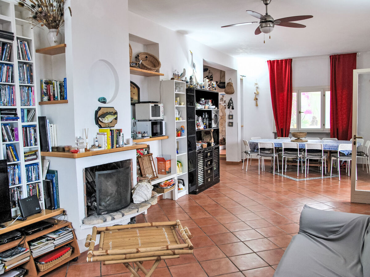 À l'étage supérieur: (escalier extérieur) grand séjour/salle à manger avec cheminée et TV (satellite).