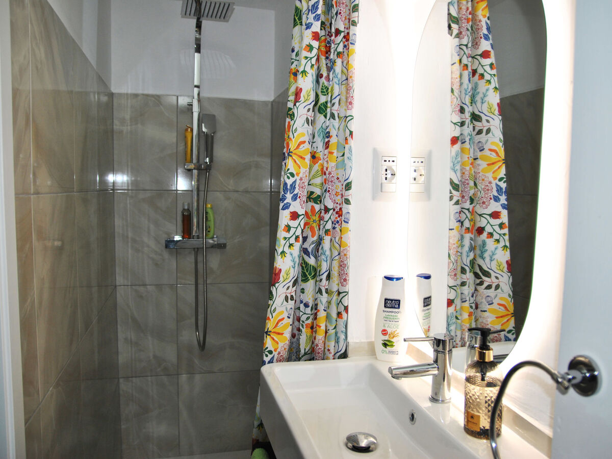 1 chambre double avec douche/bidet/WC, air-conditionné et ventilateur.