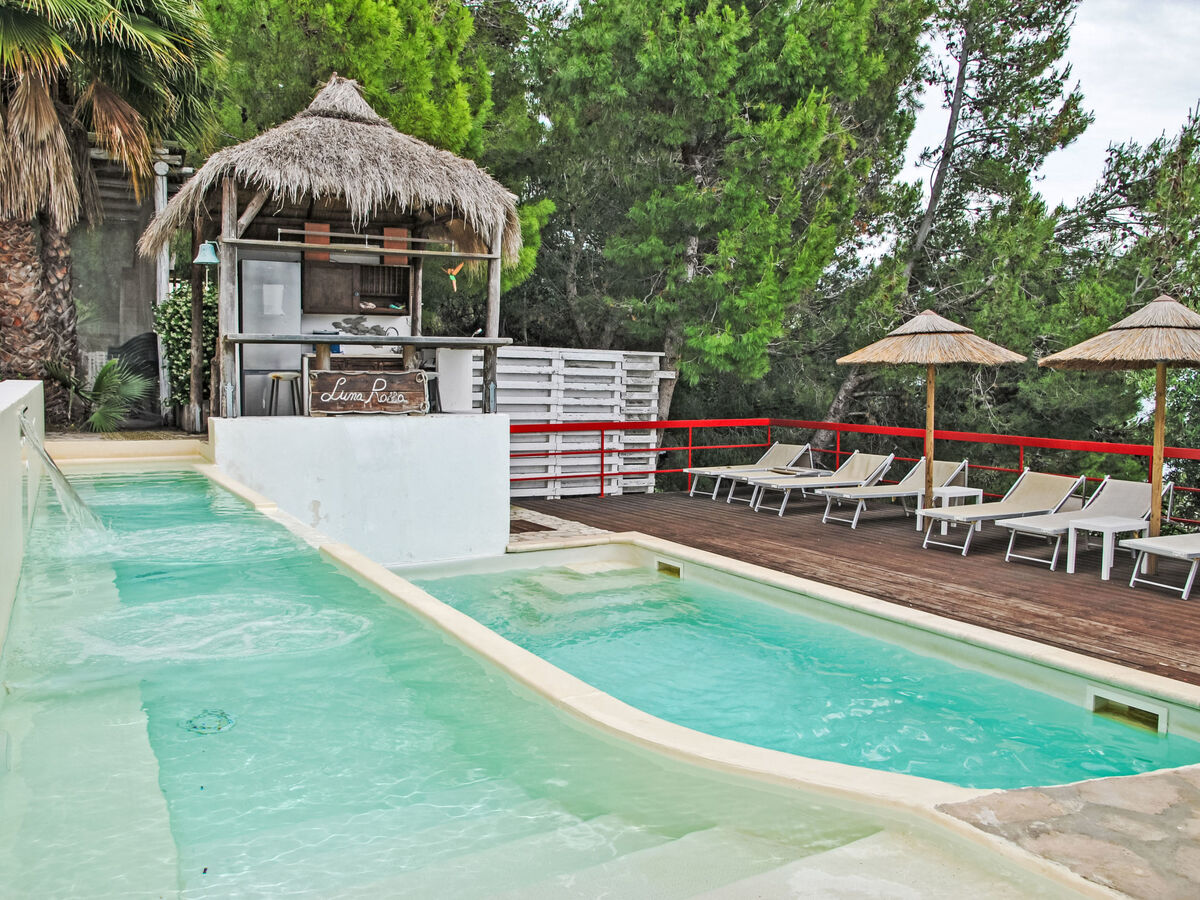Douche extérieure, bain à remous , pool house avec réfrigérateur et plaque de cuisson, jardinet (30 m2), tonnelle (4 m2), meubles de jardin, barbecue, espace barbecue, espace de jeux pour les enfants.