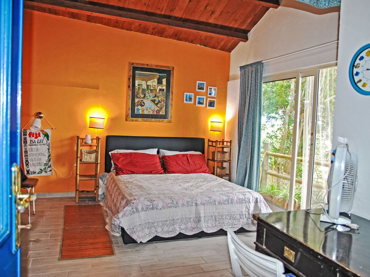 Aménagement confortable et plaisant: à l'étage inférieur: (escalier extérieur) 2 grandes chambres doubles avec baie vitrée, chaque chambre avec: douche/bidet/WC, air-conditionné et ventilateur.