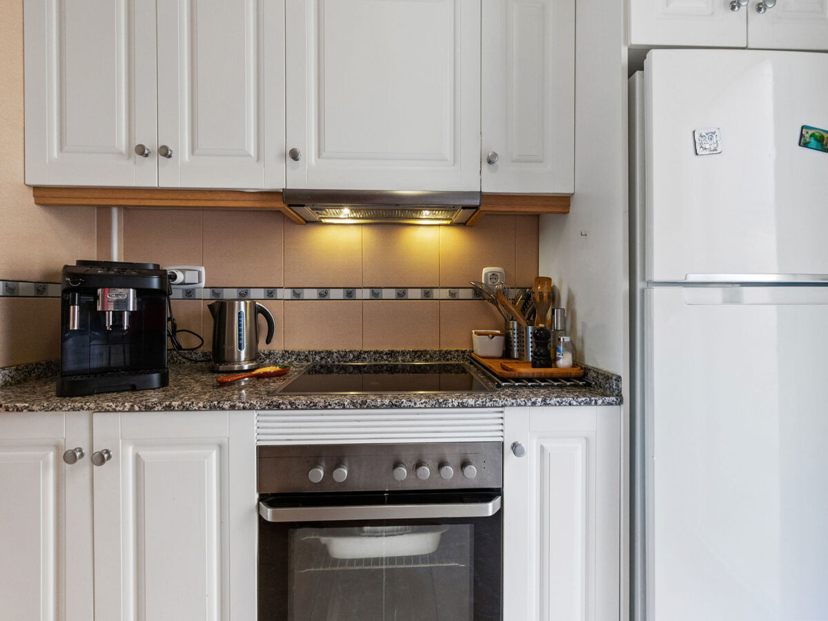 Cuisine (four, lave-vaisselle, 3 plaques vitrocéramiques, grille-pain, bouilloire électrique, micro-ondes, cafetière électrique).