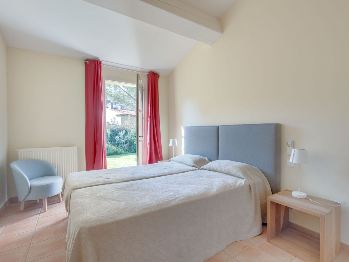 1 chambre avec 1 grand-lit (160 cm), WC séparés, douche et air-conditionné.