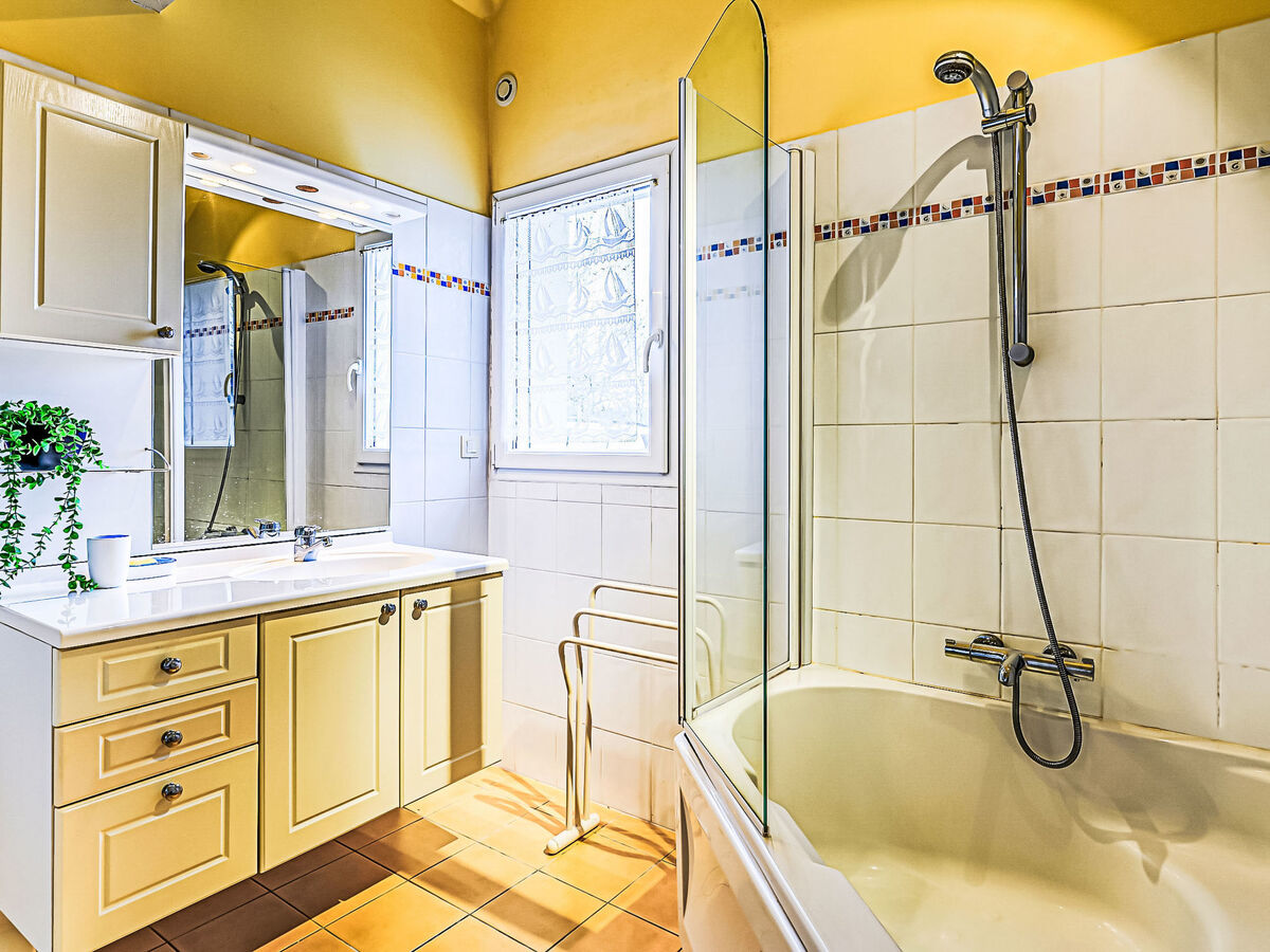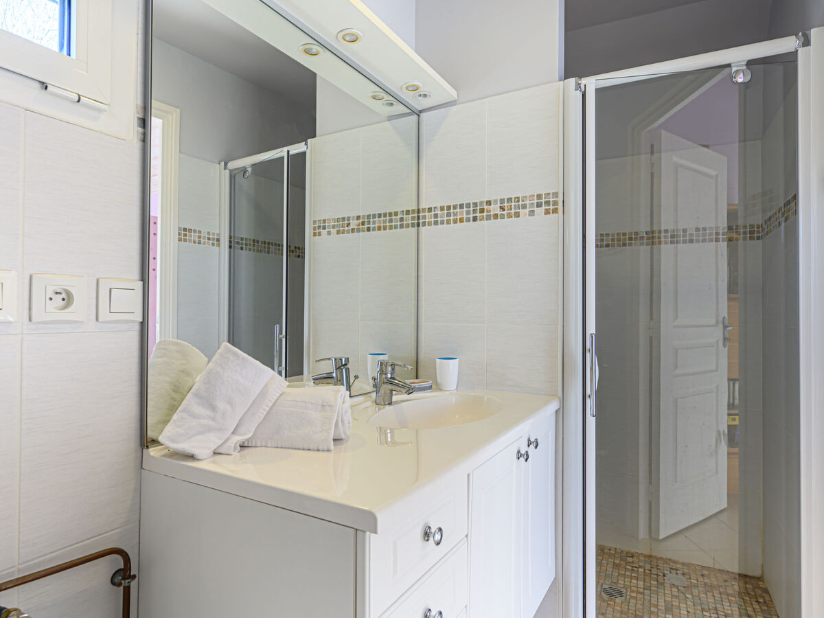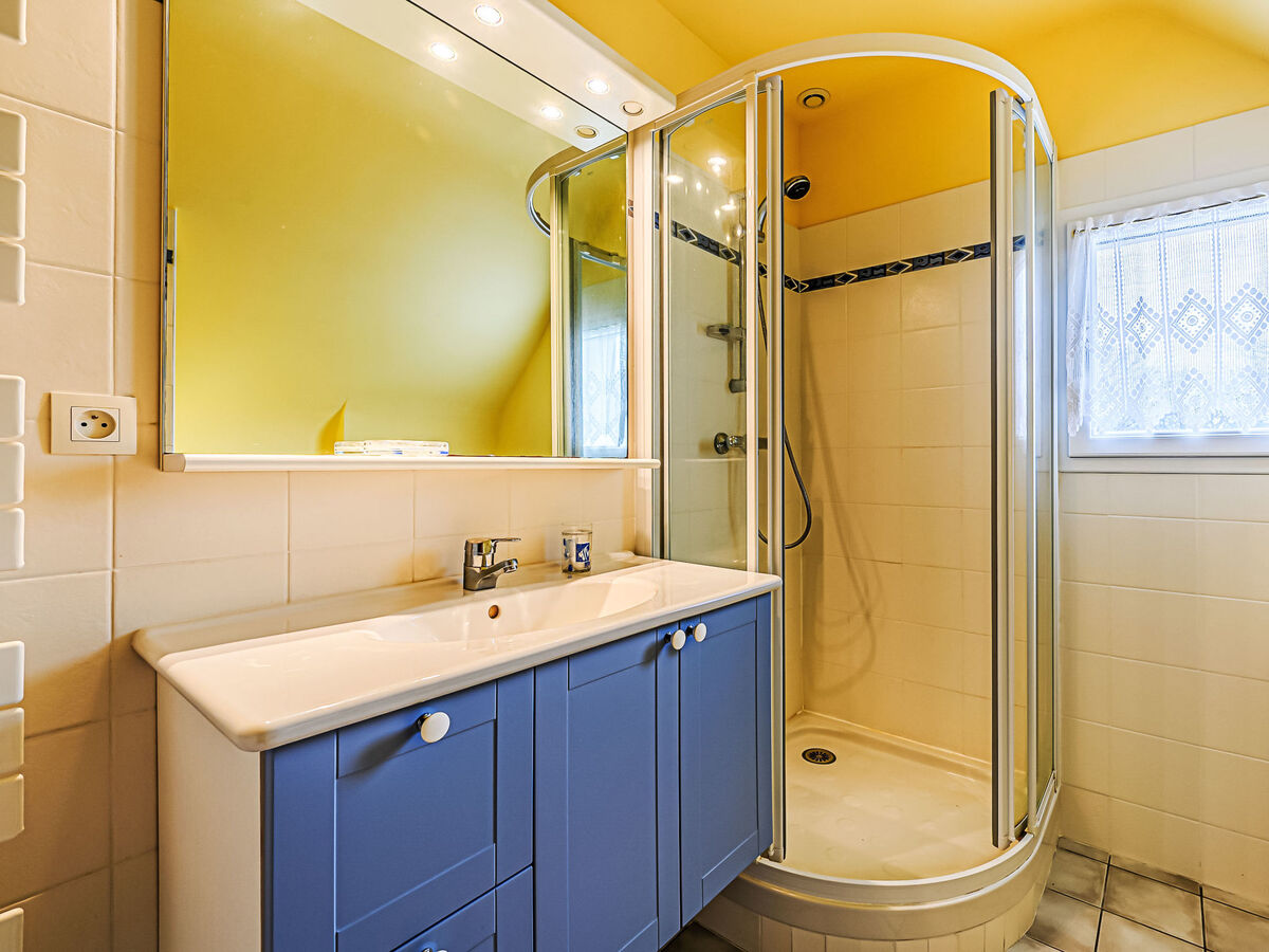 1 chambre avec 1 grand-lit (1 x 160 cm, longueur 200 cm), salle de bains.