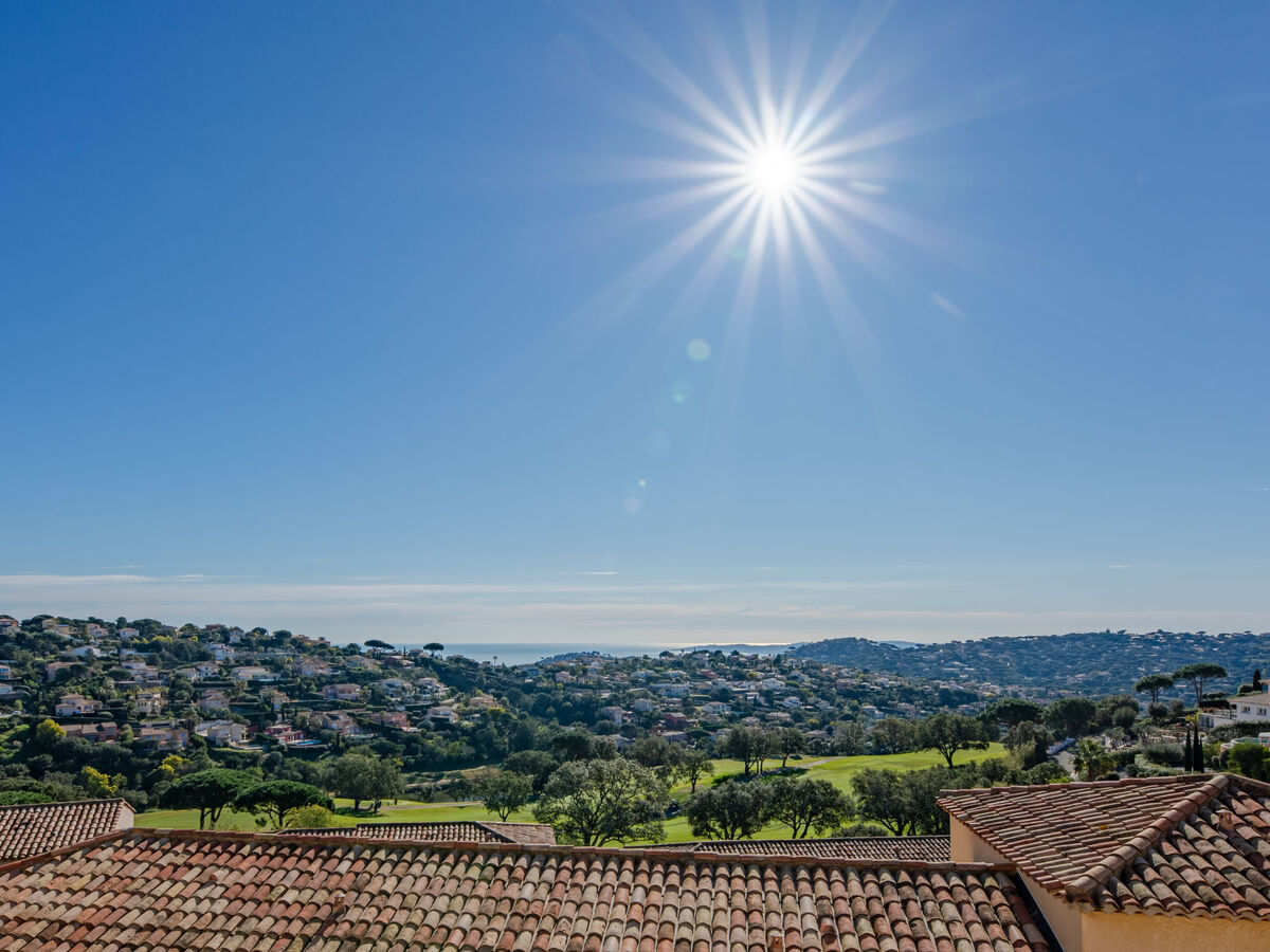 Dans le quartier de Golf de Sainte-Maxime, en bordure de la localité, à 4 km du centre, situation tranquille sur une colline, dans un quartier résidentiel, à 3 km de la mer, à 3 km de la plage, dans une impasse, en bordure du terrain de golf, orientée sud.