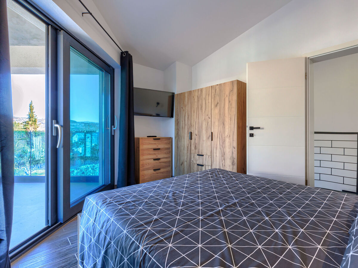À l'étage supérieur: 1 chambre avec 1 grand-lit (140 cm, longueur 200 cm), TV (satellite) et air-conditionné.