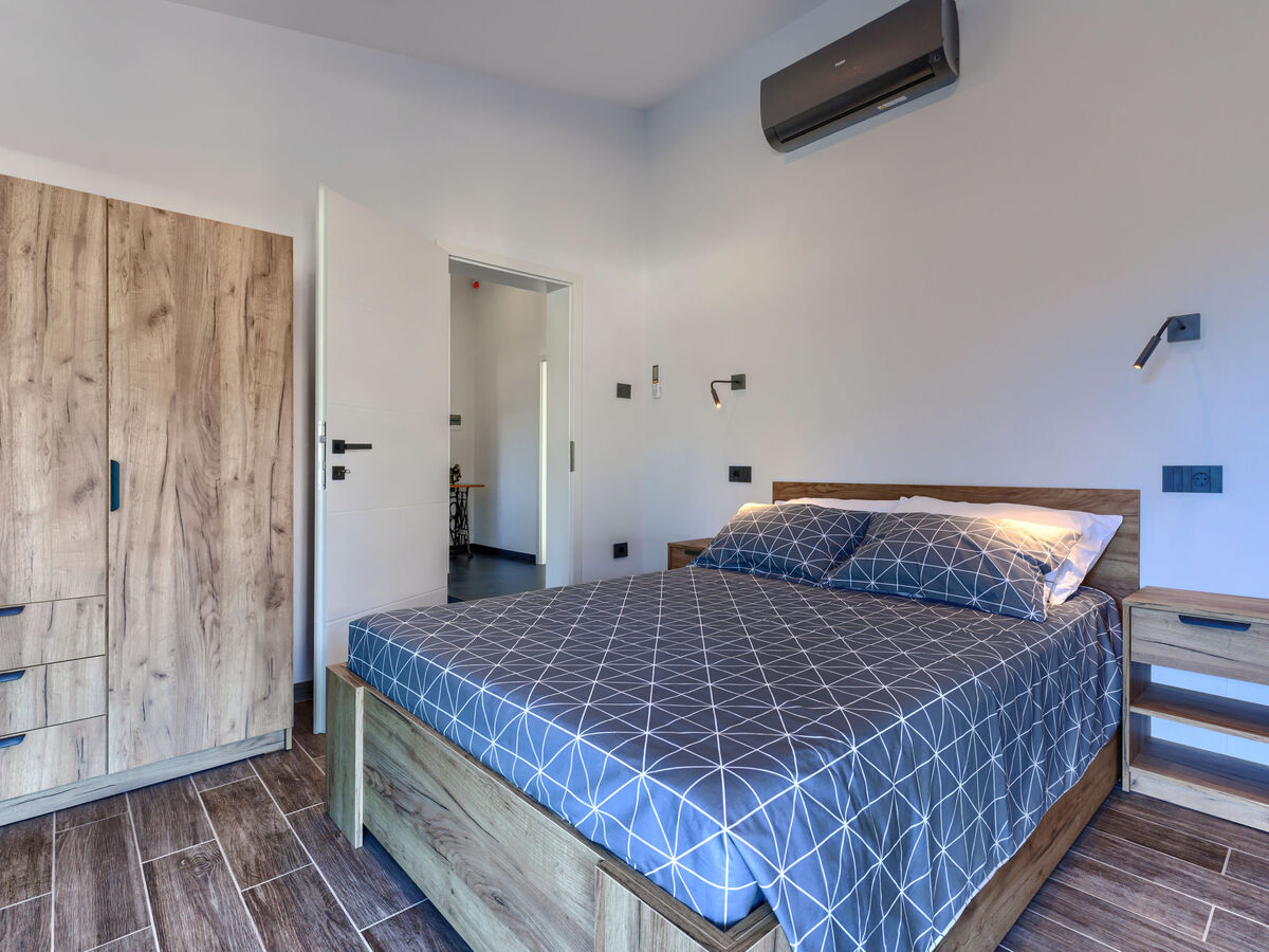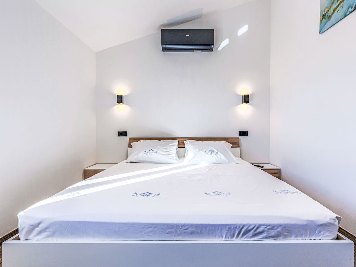 1 chambre avec 1 grand-lit (180 cm, longueur 200 cm), TV (satellite) et air-conditionné.