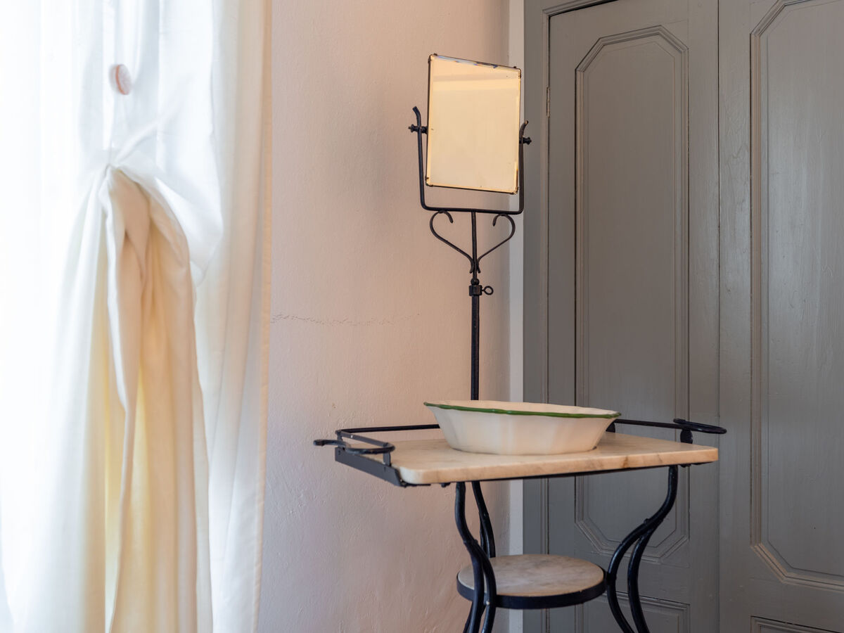 1 chambre double avec 1 grand-lit (135 cm, longueur 190 cm), douche/bidet/WC et air-conditionné.