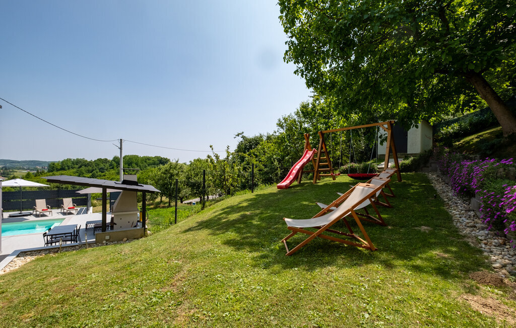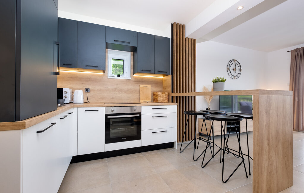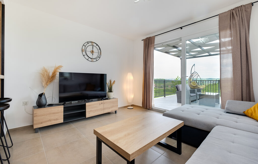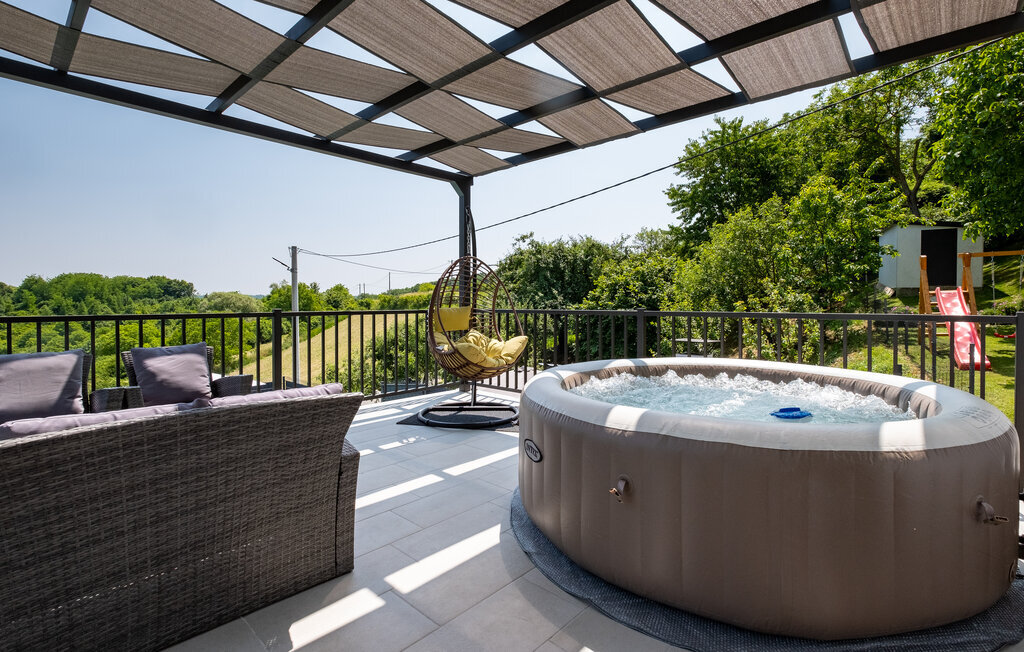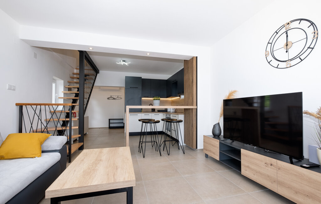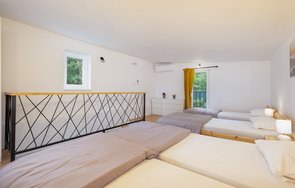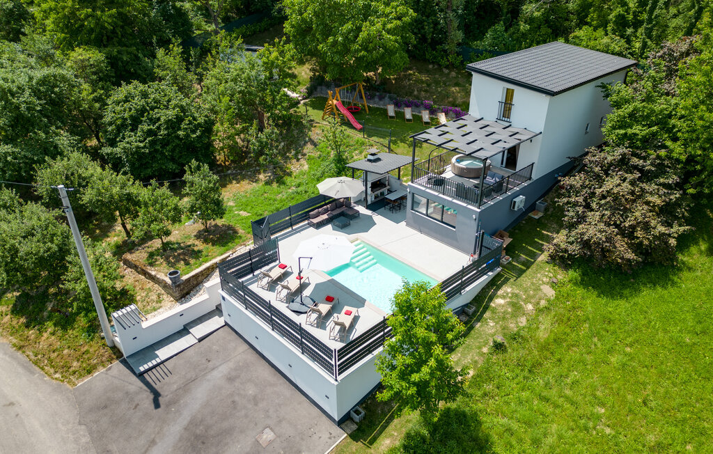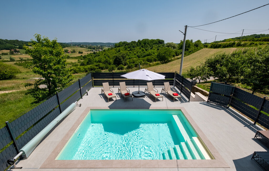 Le vaste espace extérieur vous promet de longues heures sous le soleil croate. Commencez la journée par un petit-déjeuner sur la terrasse, rafraîchissez-vous dans la piscine ou détendez-vous sur les chaises longues dans le jardin bien entretenu. Offrez-vous un apéritif sur l'accueillant salon du balcon, laissez votre regard se perdre sur les environs idylliques et organisez des soirées barbecue pleines d'ambiance.