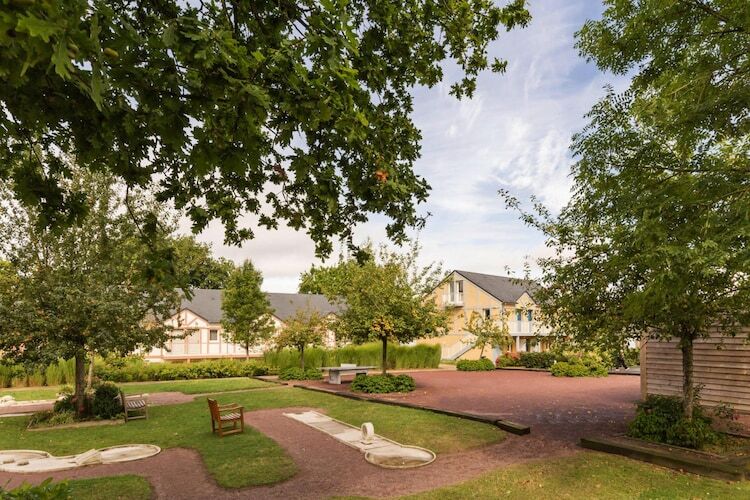 Le complexe de vacances spacieux est idéalement niché dans le paysage et offre tout pour des vacances reposantes. En plus d'une piscine extérieure commune (ouverte de mai à septembre), il y a aussi une piscine chauffée avec bain à remous et pataugeoire pour les journées plus fraîches. De nombreuses activités sportives telles que des cours de fitness, du tennis, du baby-foot, du mini golf ou de la pétanque promettent amusement et variété et les enfants seront comblés par le grand village d'enfants couvert avec aire de jeux. Il y a aussi une supérette et un restaurant sur place, donc tout est facilement accessible à pied. Cependant, ne manquez pas un voyage à la mer : les longues plages de sable de Houlgate, Cabourg et Villers-sur-Mer sont à environ 11 km.
