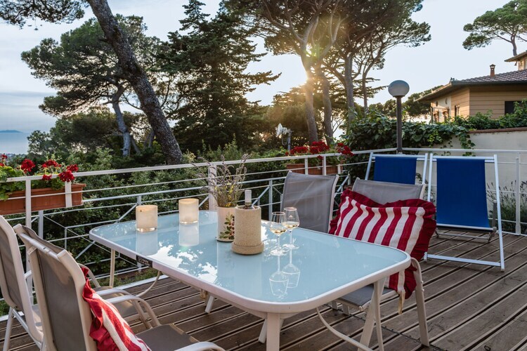 Toutes les chambres sont équipées de sols en terre cuite toscane typiques. Le salon et la cuisine sont reliés. L'ensemble de l'appartement est très lumineux et surtout calme et vous offre beaucoup d'espace pour des vacances reposantes. La terrasse privée avec vue sur la mer se trouve juste en face de l'appartement.