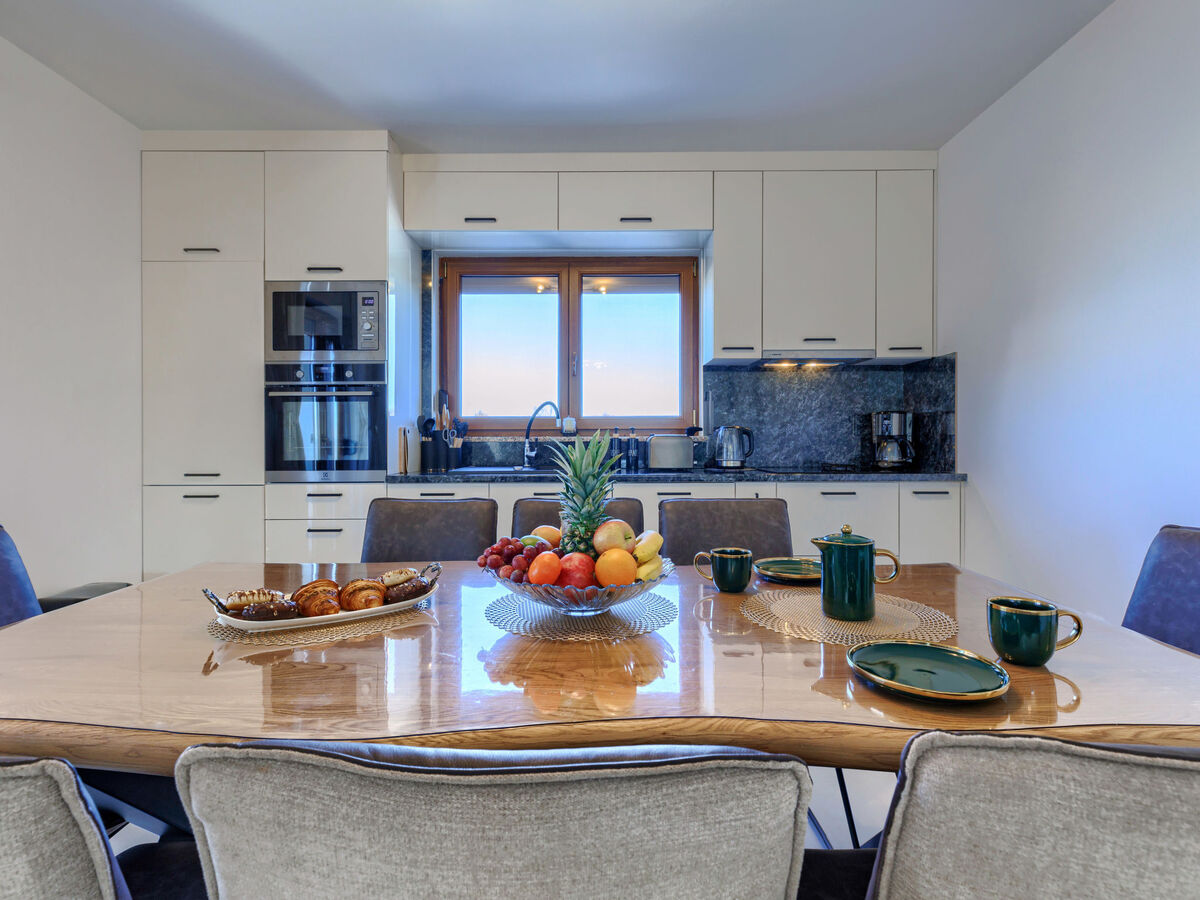 Cuisine ouverte (four, lave-vaisselle, 4 plaques vitrocéramiques, grille-pain, bouilloire électrique, micro-ondes, congélateur, cafetière électrique).