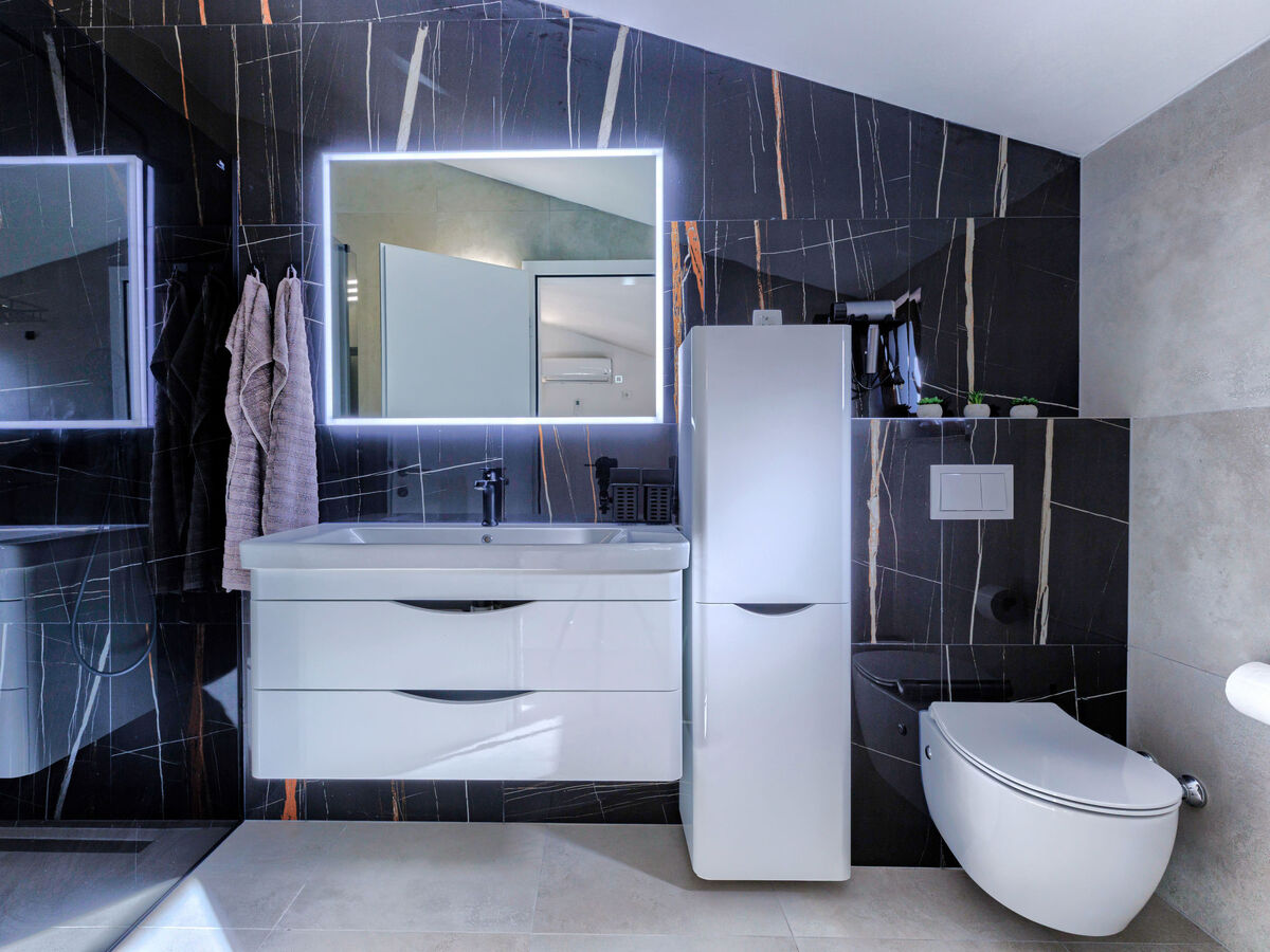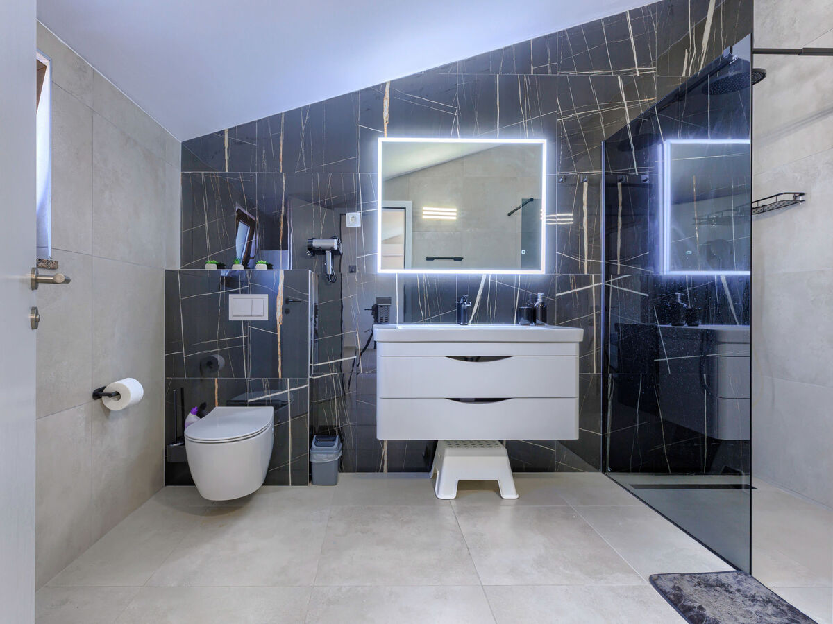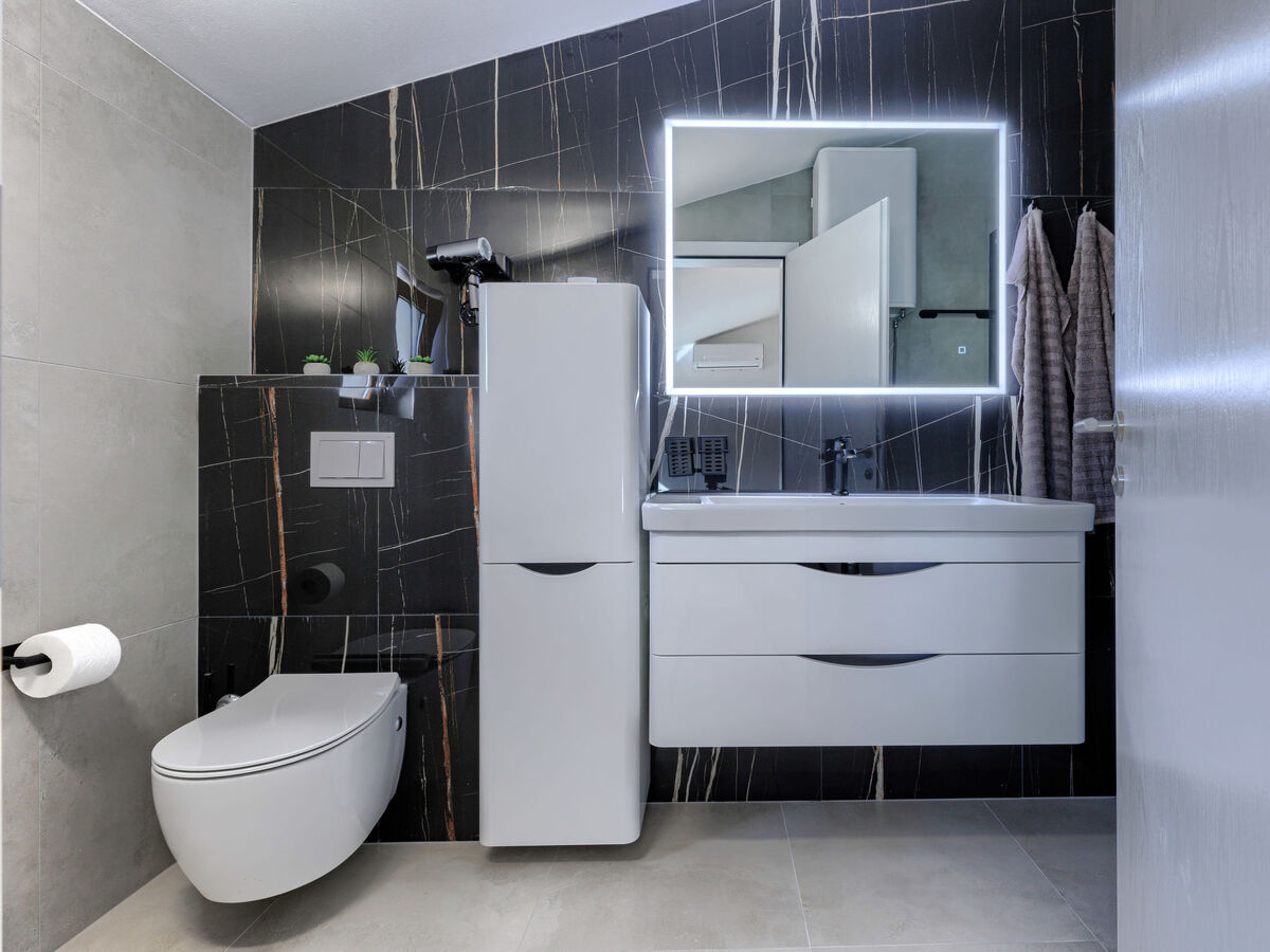 Cuisine ouverte (four, lave-vaisselle, 4 plaques à induction, grille-pain, bouilloire électrique, micro-ondes, congélateur, cafetière électrique).