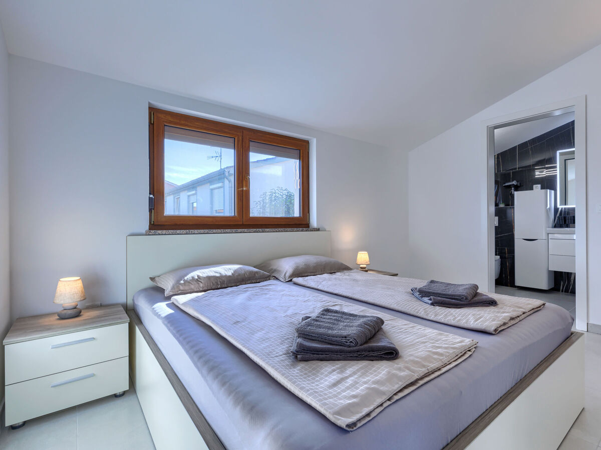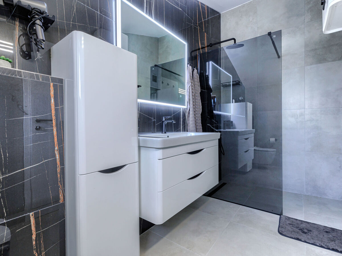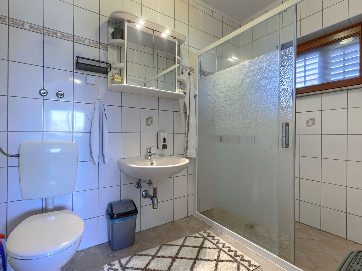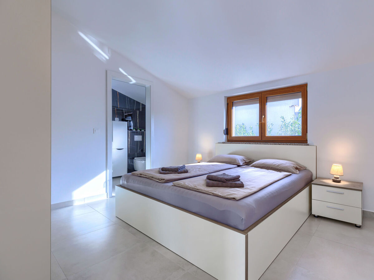 1 chambre avec 1 grand-lit (180 cm, longueur 200 cm), douche/WC.