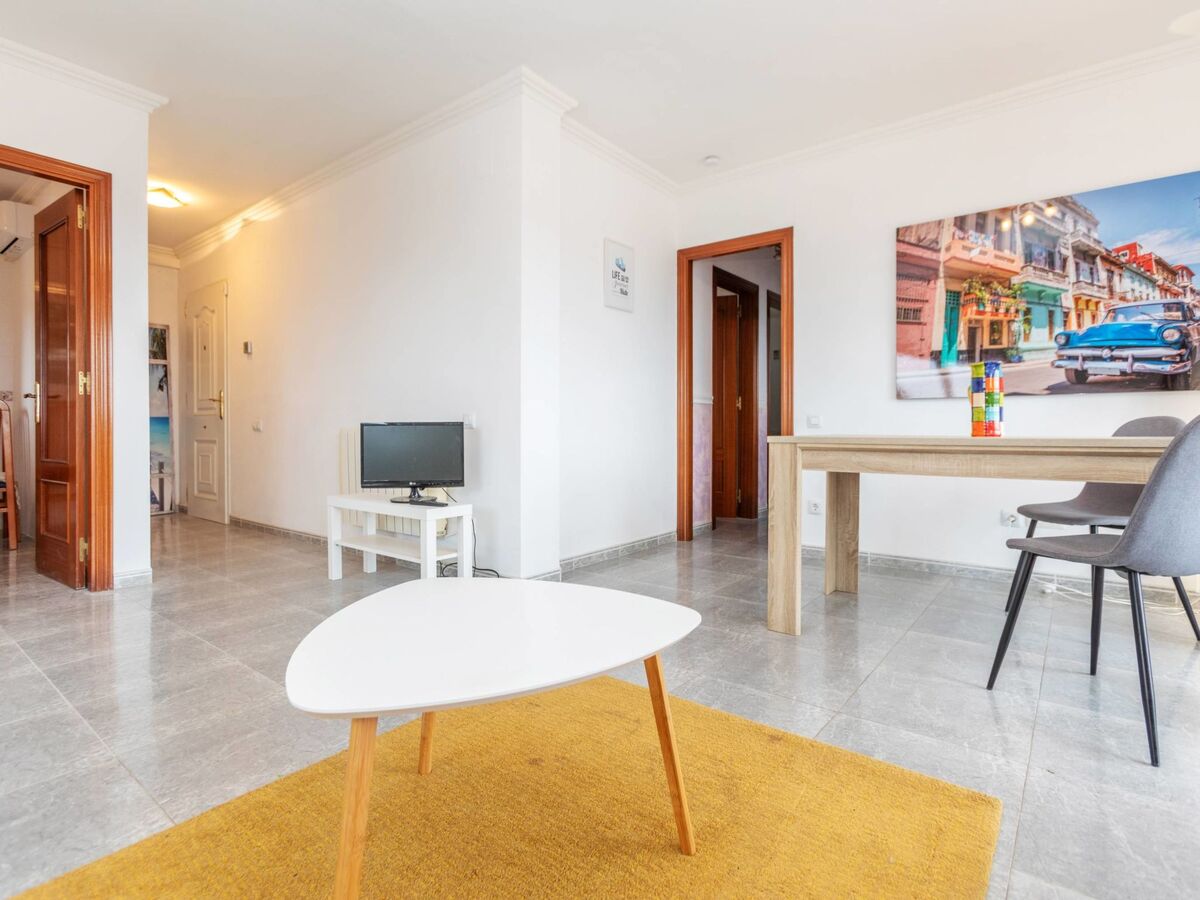 Clair, rénovée en 2025, aménagement fonctionnel et plaisant: séjour/salle à manger avec table pour les repas et Télévision numérique.