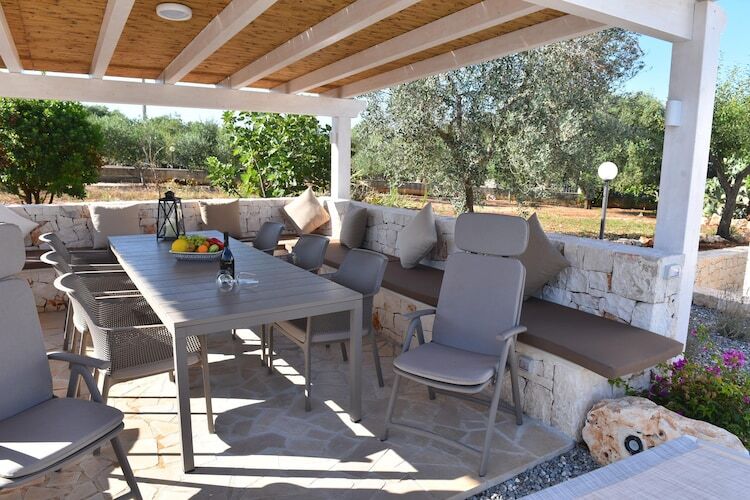 cuisine(foyer, bouilloire, grille-pain, cafetière/percolateur, micro ondes, lave-vaisselle , combinaison réfrigérateur/congélateur), salle à manger-salon(canapé-lit double, table), chambre(lit double), chambre(lit double), salle de bains(douche, bidet, sèche-cheveux), WC, cuisine d'été, grill, terrasse, mobilier de jardin, transats, piscine(privé, extérieur, 12 x 5 m.), Pare-soleil