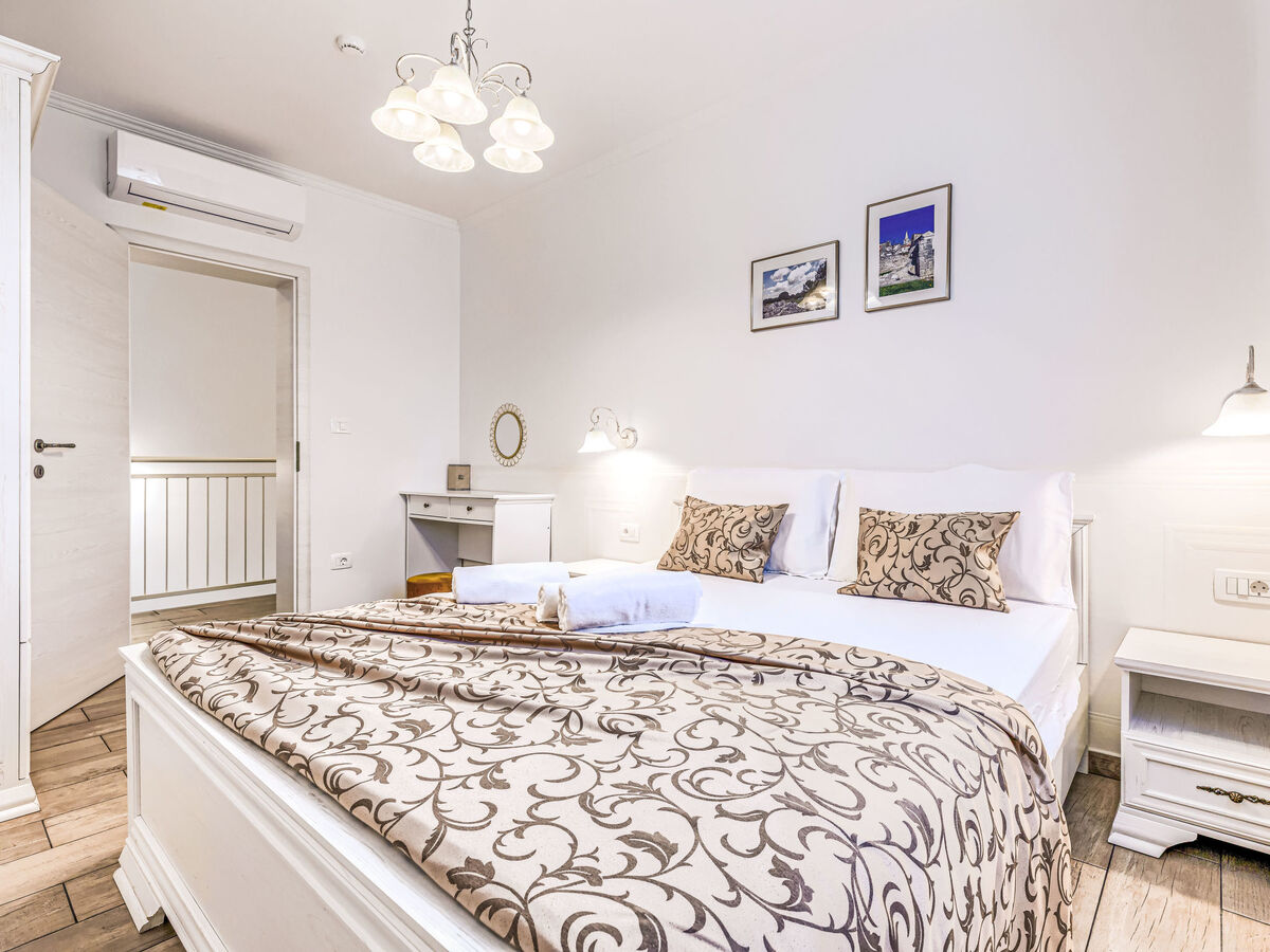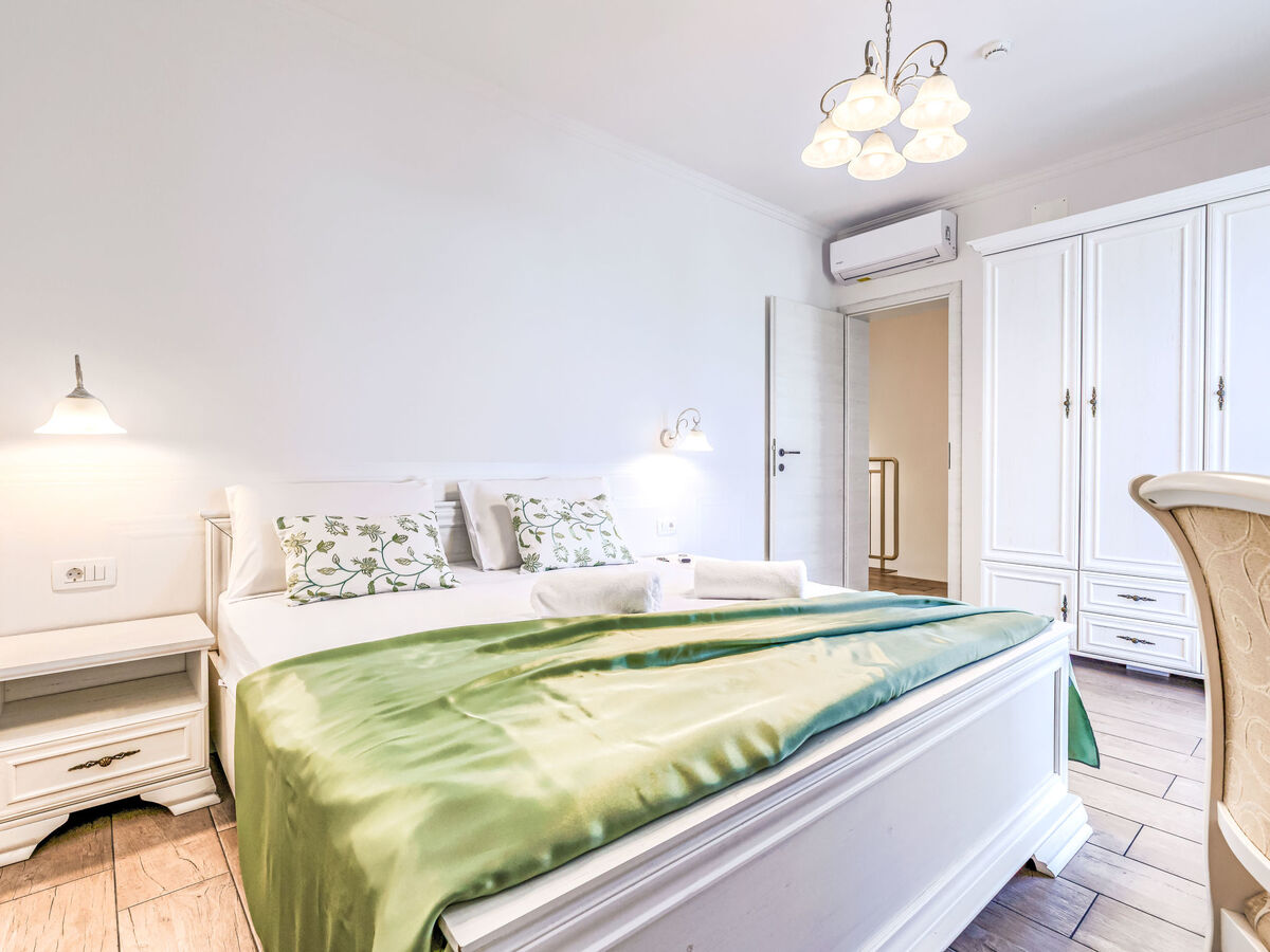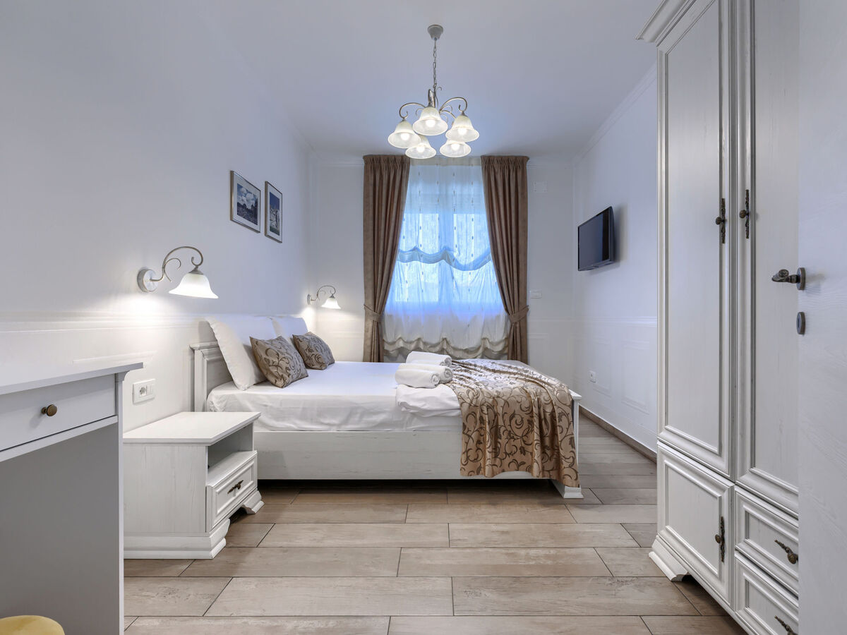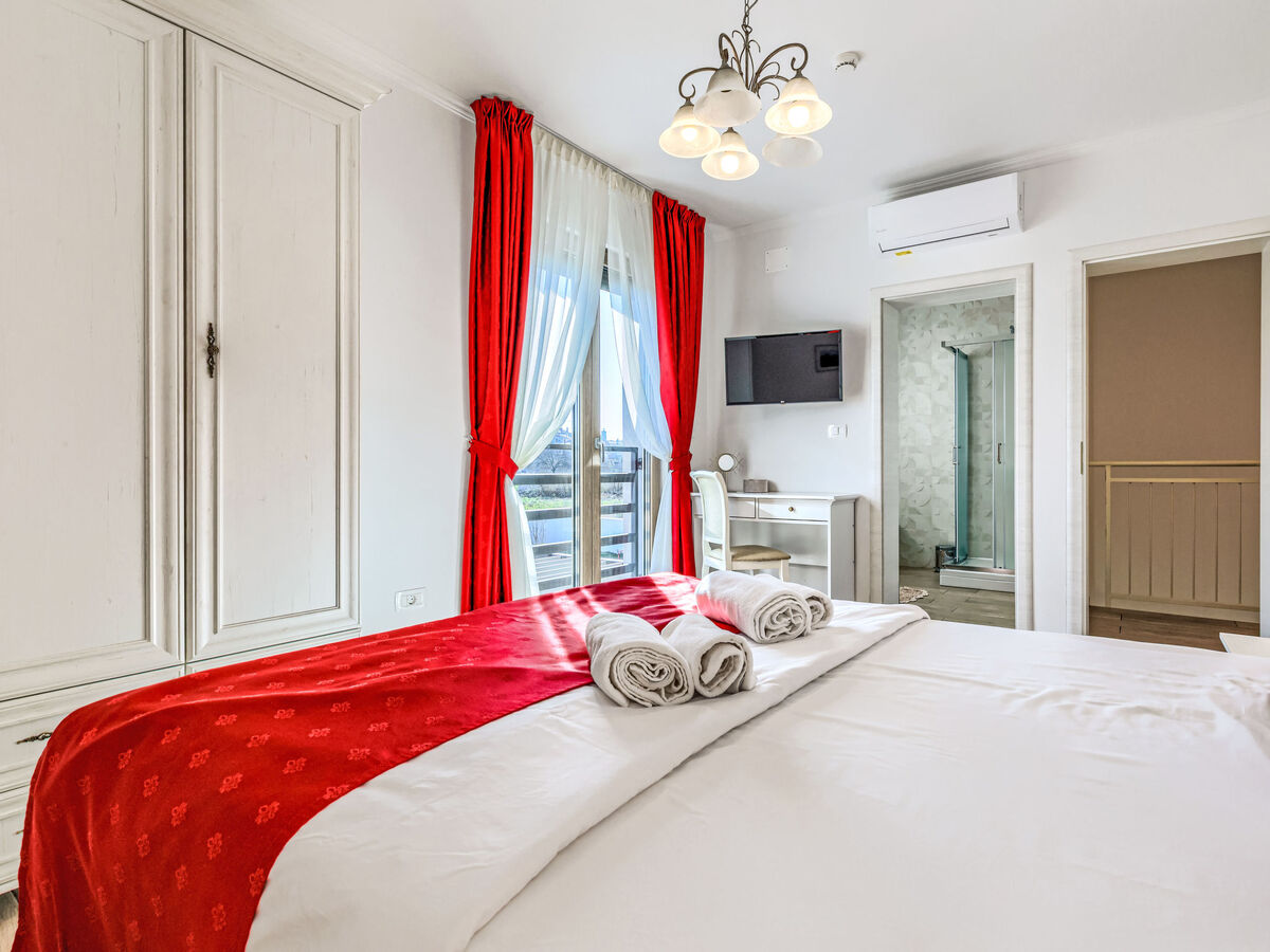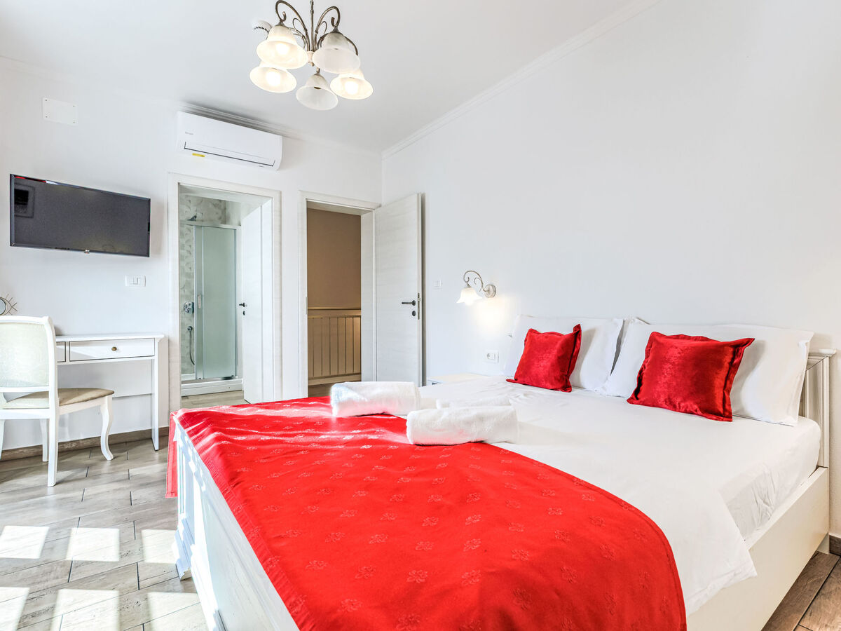 À l'étage supérieur: 3 chambres, chaque chambre avec: 1 grand-lit (160 cm, longueur 200 cm), TV (satellite) (écran plat), air-conditionné.