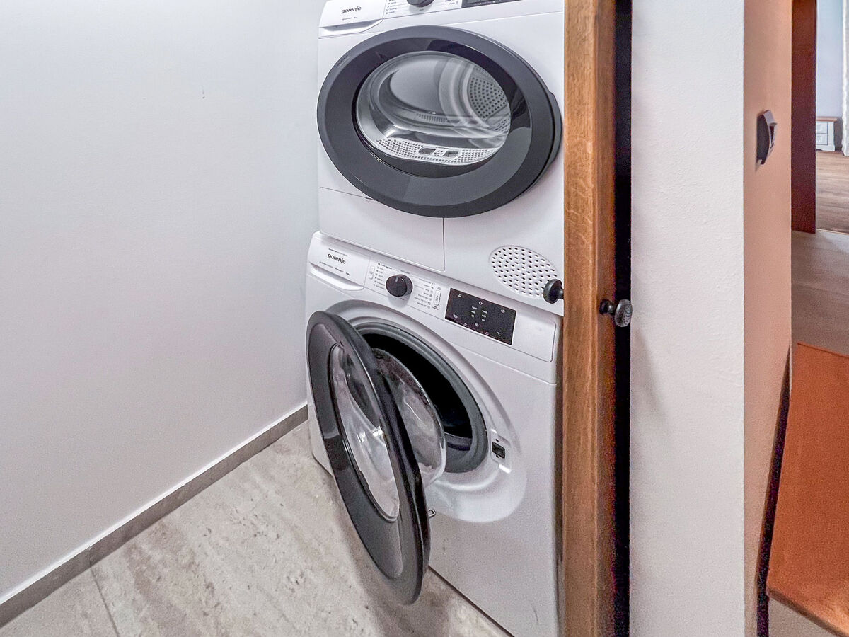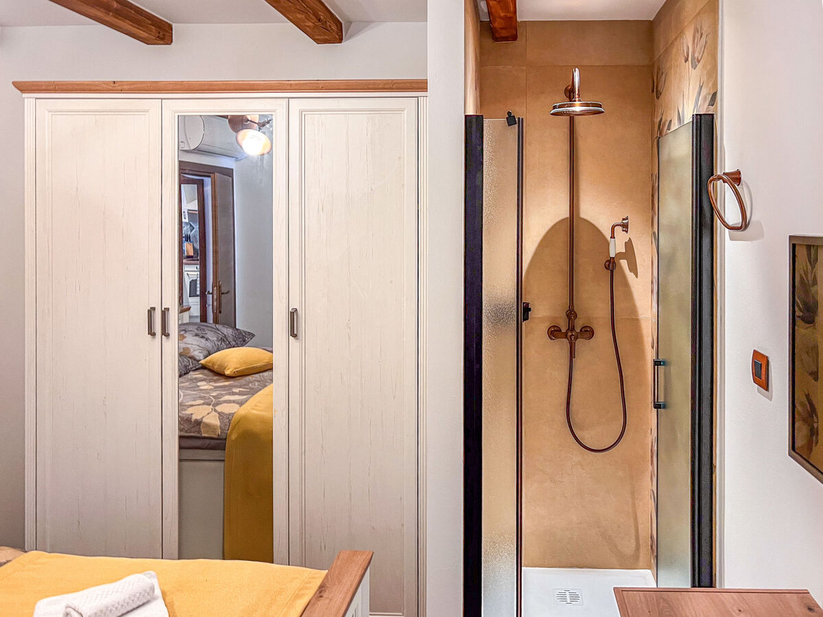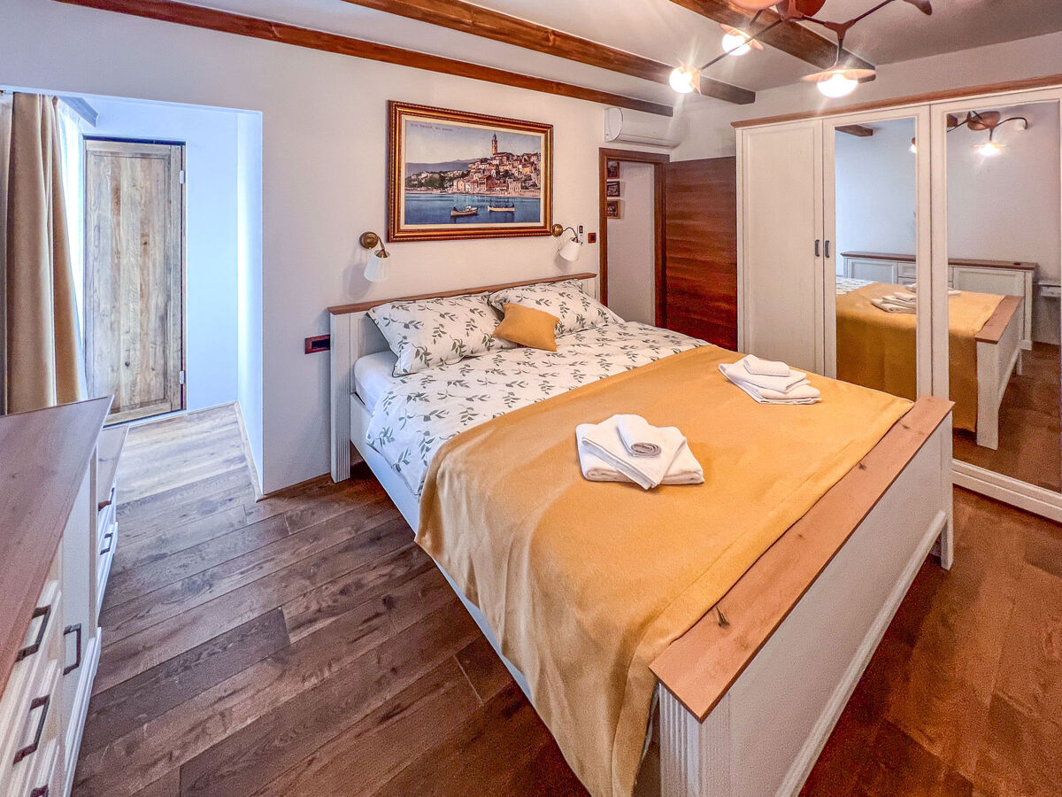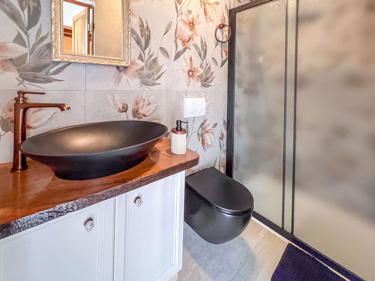 À l'étage supérieur: 1 chambre avec 1 grand-lit (180 cm, longueur 200 cm), douche/WC et TV (satellite) (écran plat), air-conditionné.