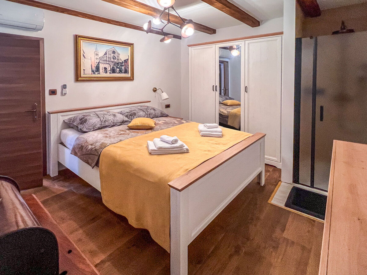 1 chambre avec 1 grand-lit (180 cm, longueur 200 cm), bain/douche/WC et TV (satellite) (écran plat), air-conditionné.