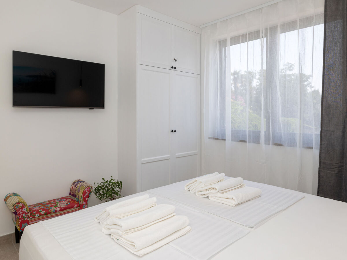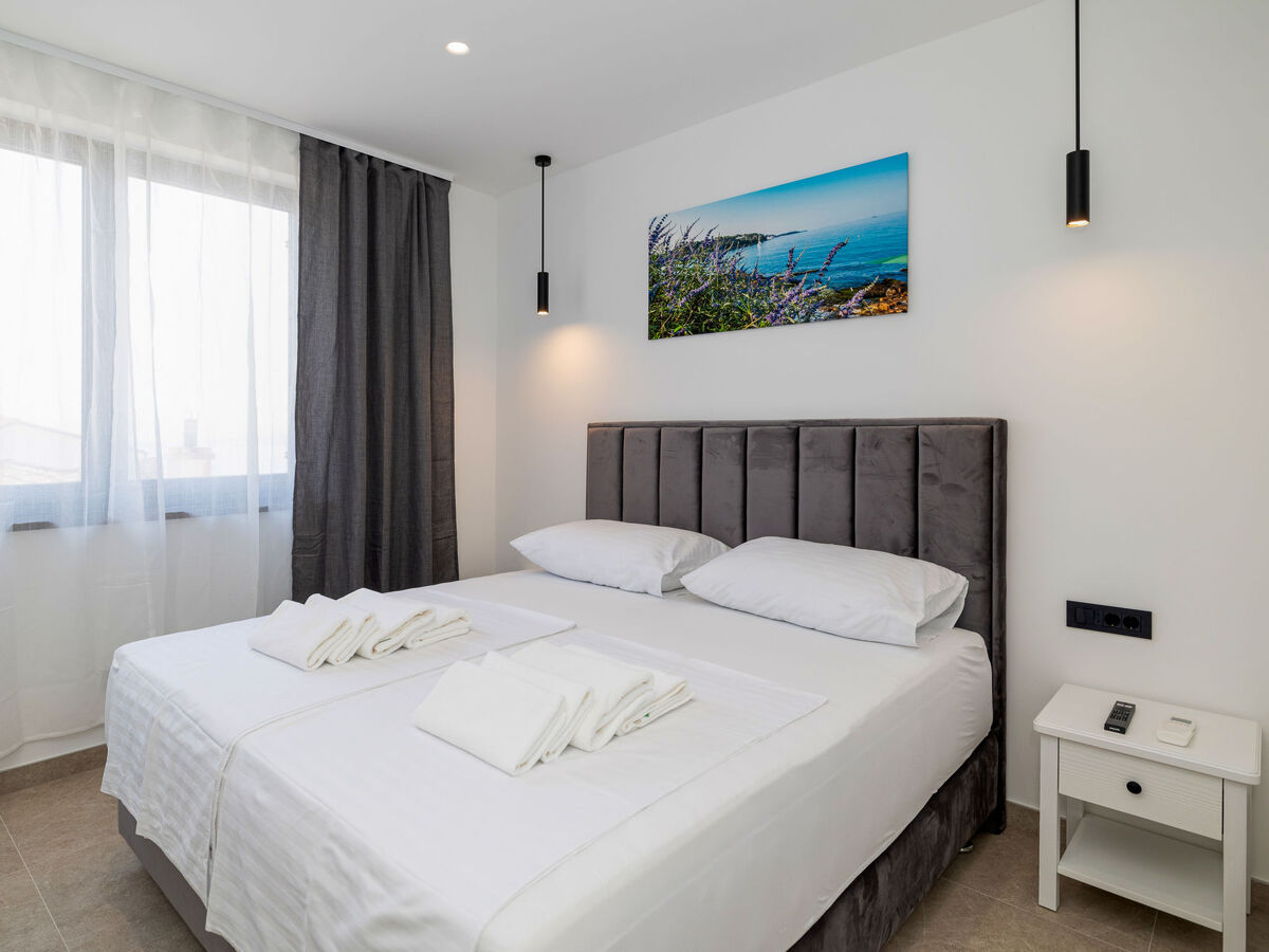 1 chambre avec 1 grand-lit (180 cm, longueur 200 cm), TV (satellite) et air-conditionné.