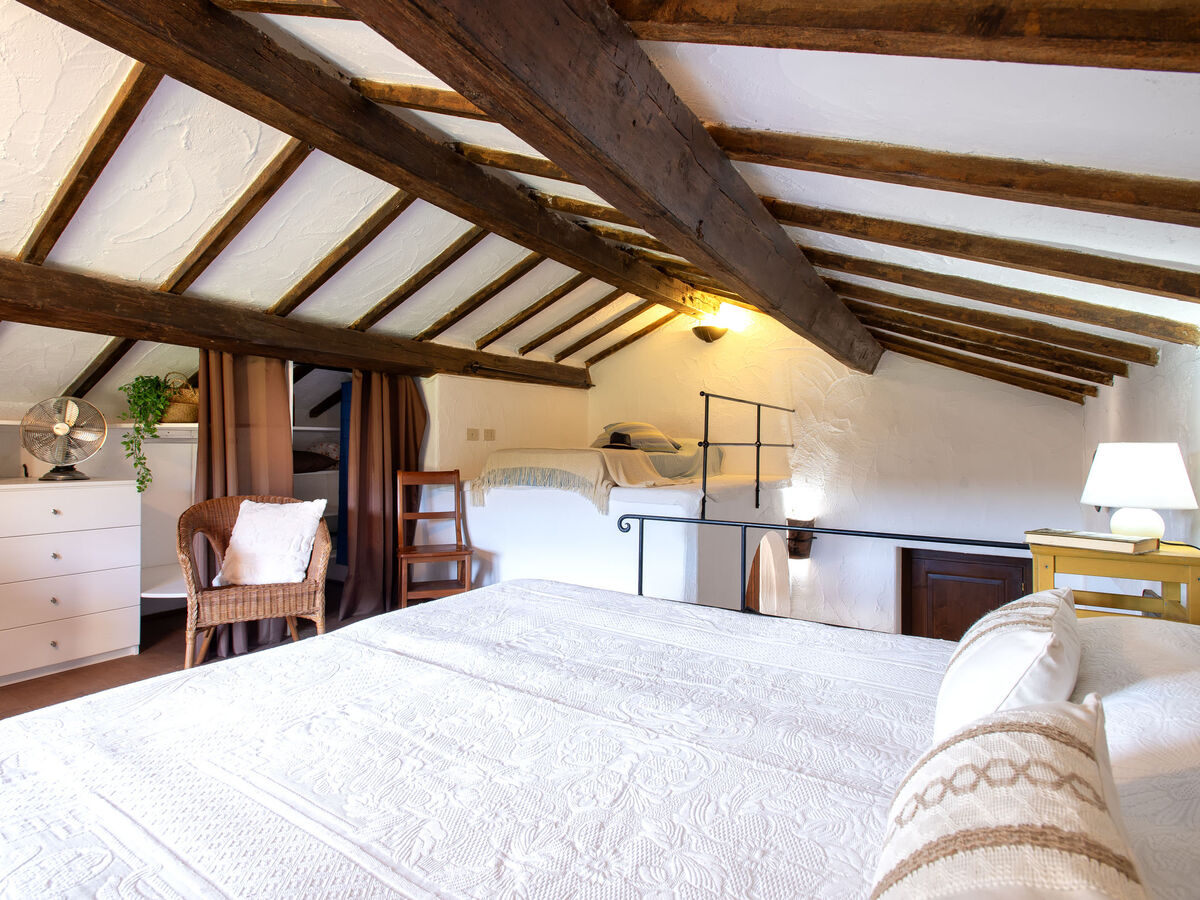 À l'étage supérieur: 1 chambre double, mansardée avec 1 lit.