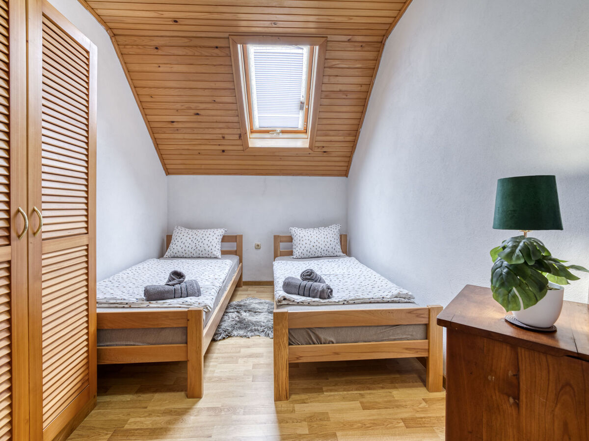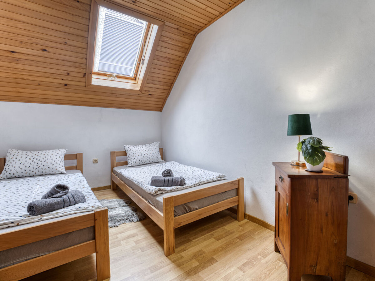Mansardé, hauteur plafond 140 - 270 cm avec 2 lits (90 cm, longueur 200 cm).