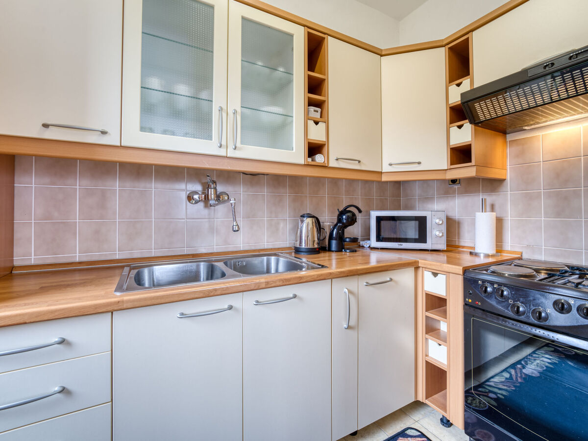 Cuisine ouverte (2 plaques de cuisson, four, grille-pain, bouilloire électrique, micro-ondes, congélateur, cafetière électrique).