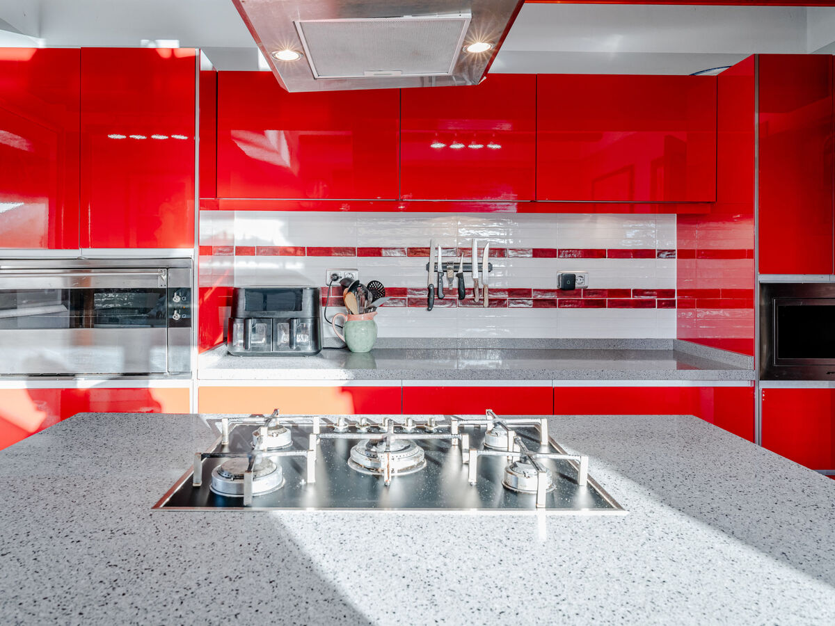 Grande cuisine (four, lave-vaisselle, 5 feux, grille-pain, bouilloire électrique, micro-ondes, congélateur, cafetière électrique, ilot de cuisine).