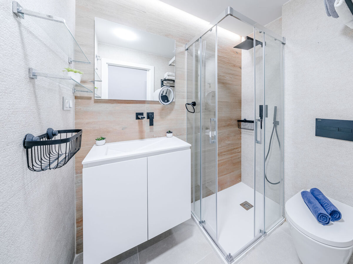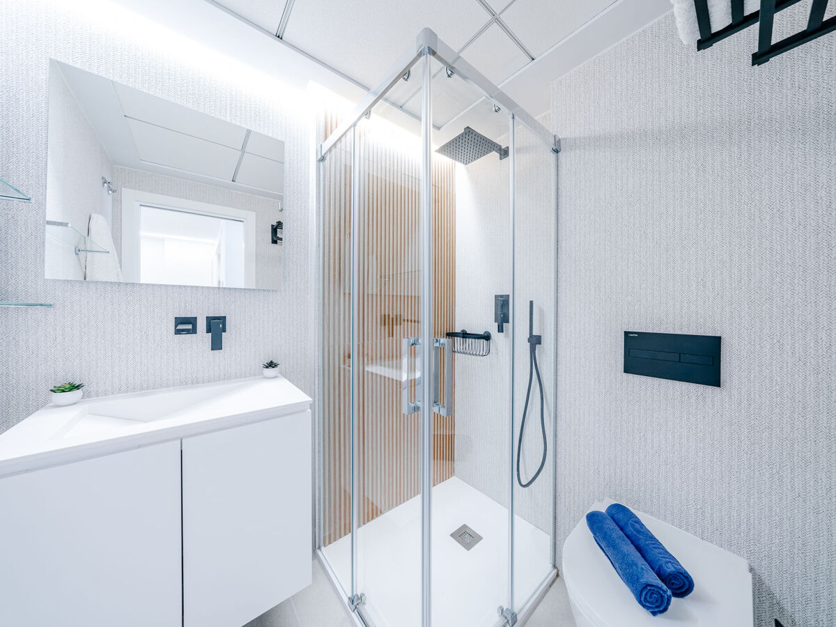 1 chambre avec 1 grand-lit (170 cm, longueur 210 cm), douche/WC, Télévision numérique, air-conditionné et chauffage à air chaud.