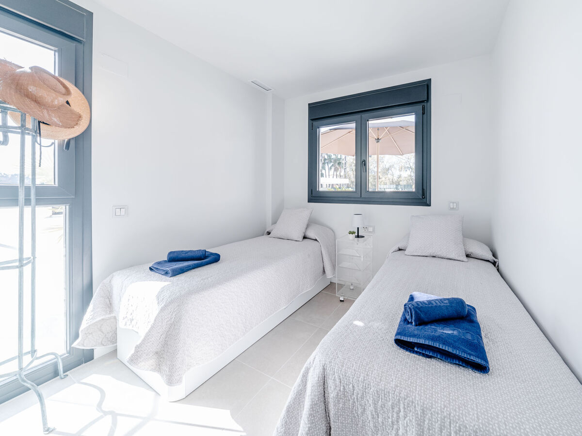 1 chambre avec 2 lits (90 cm, longueur 200 cm), air-conditionné et chauffage à air chaud.