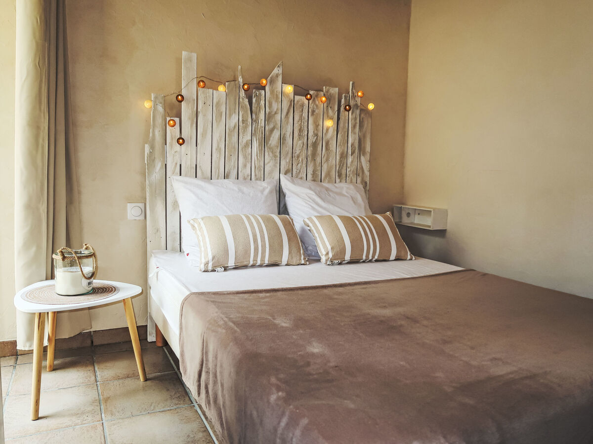 1 chambre avec 1 grand-lit (140 cm, longueur 190 cm).
